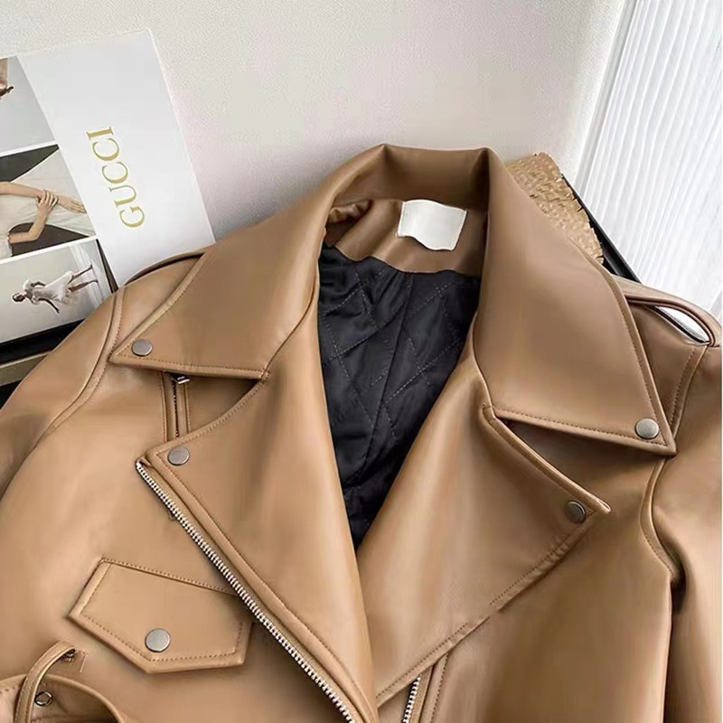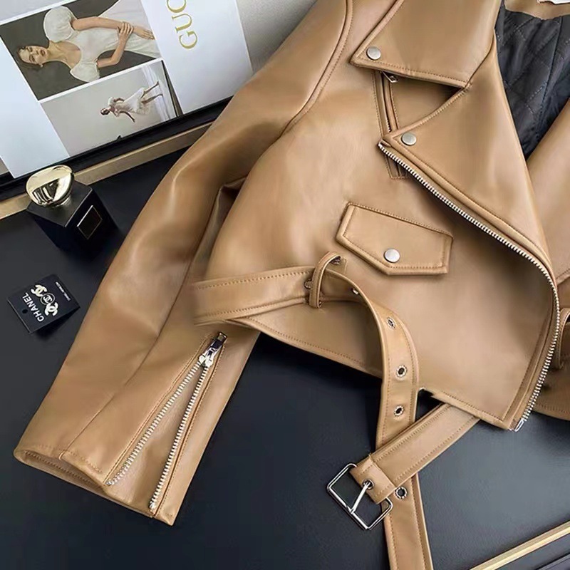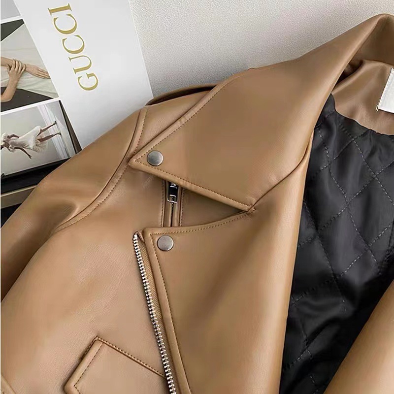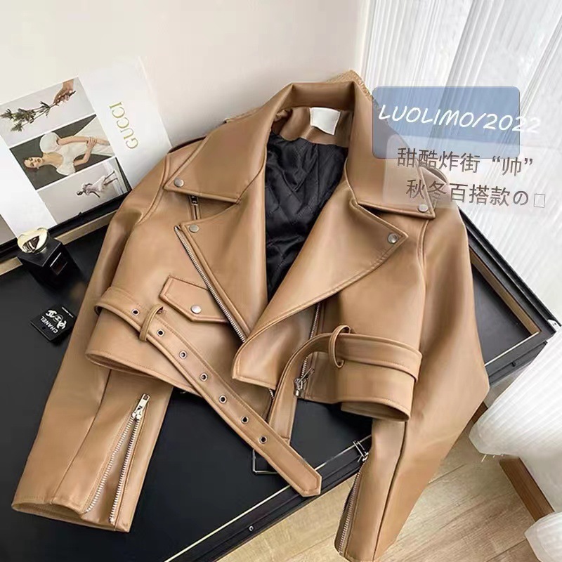 여아 짧은 가죽 자켓 봄과 가을 새로운 한국 단색 PU 가죽 짧은 비스듬한 지퍼 중간 및 큰 어린이 자전거 의류 가죽 자켓