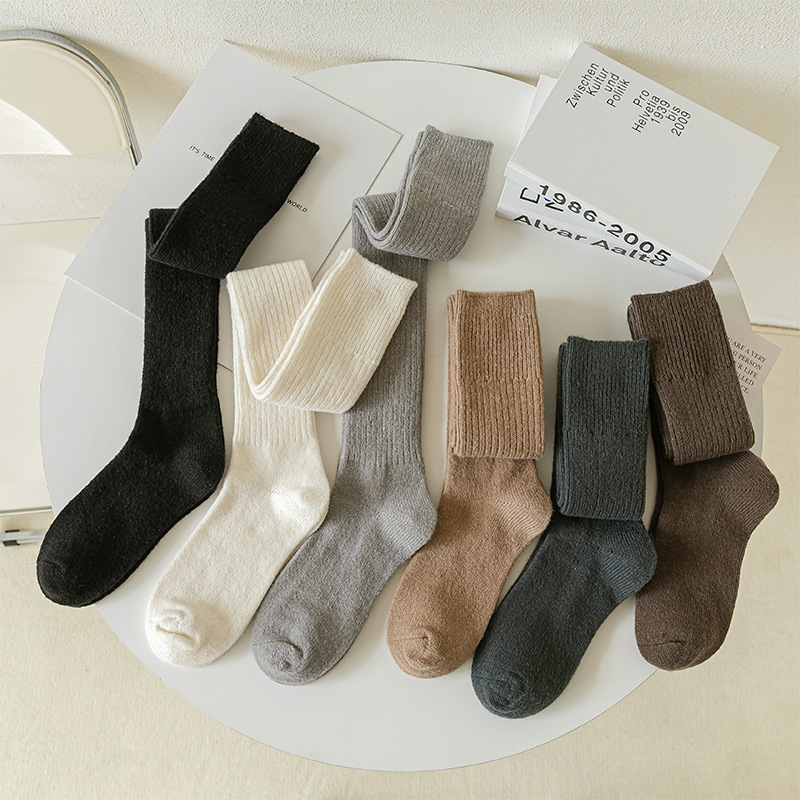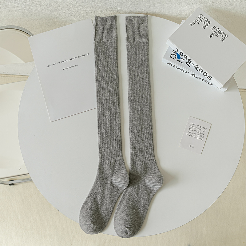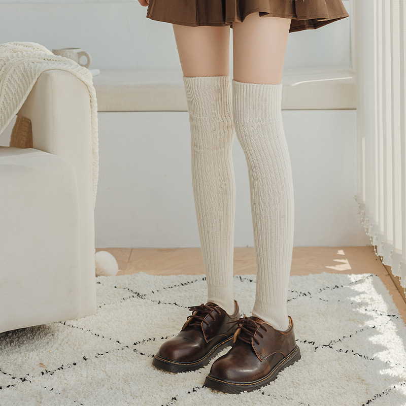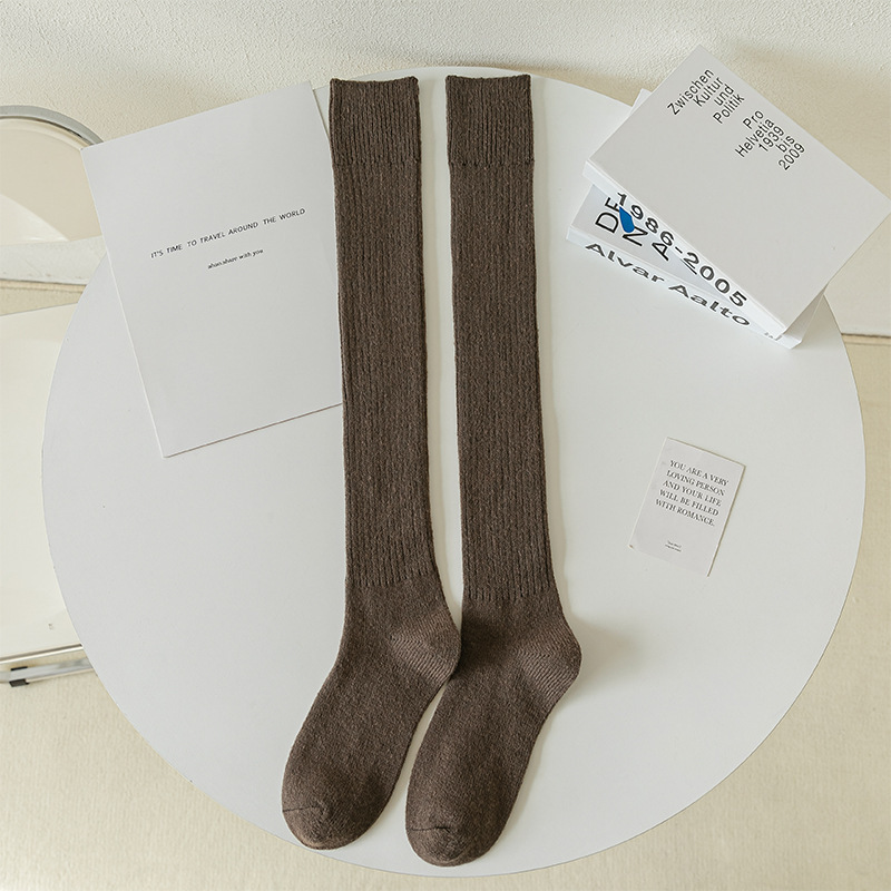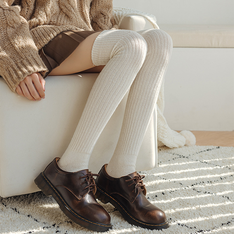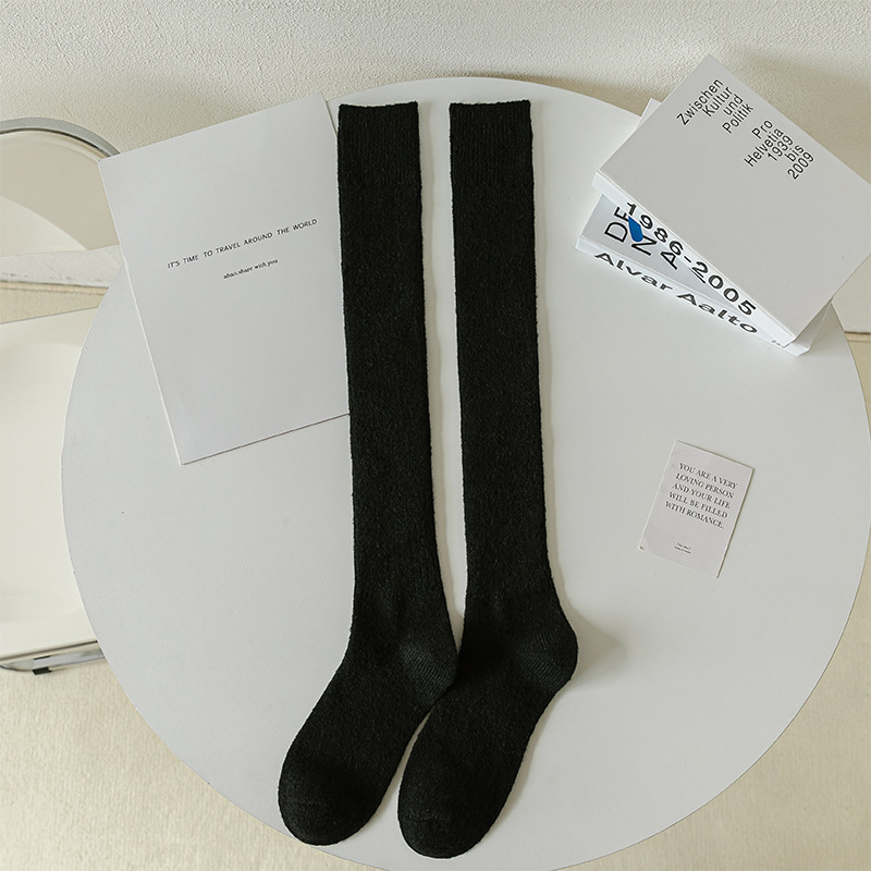흑인과 백인 양모 무릎 양말 여자의 일본 대학 스타일 단색 무릎 양말 겨울 기모 두꺼운 따뜻한 송아지 양말