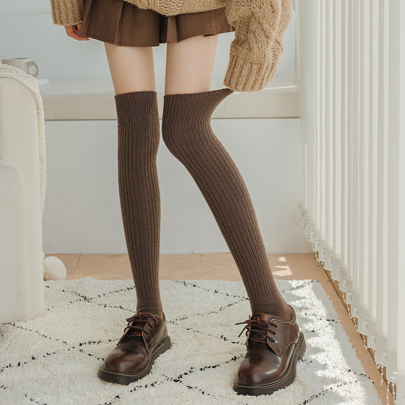 흑인과 백인 양모 무릎 양말 여자의 일본 대학 스타일 단색 무릎 양말 겨울 기모 두꺼운 따뜻한 송아지 양말스토어 가기