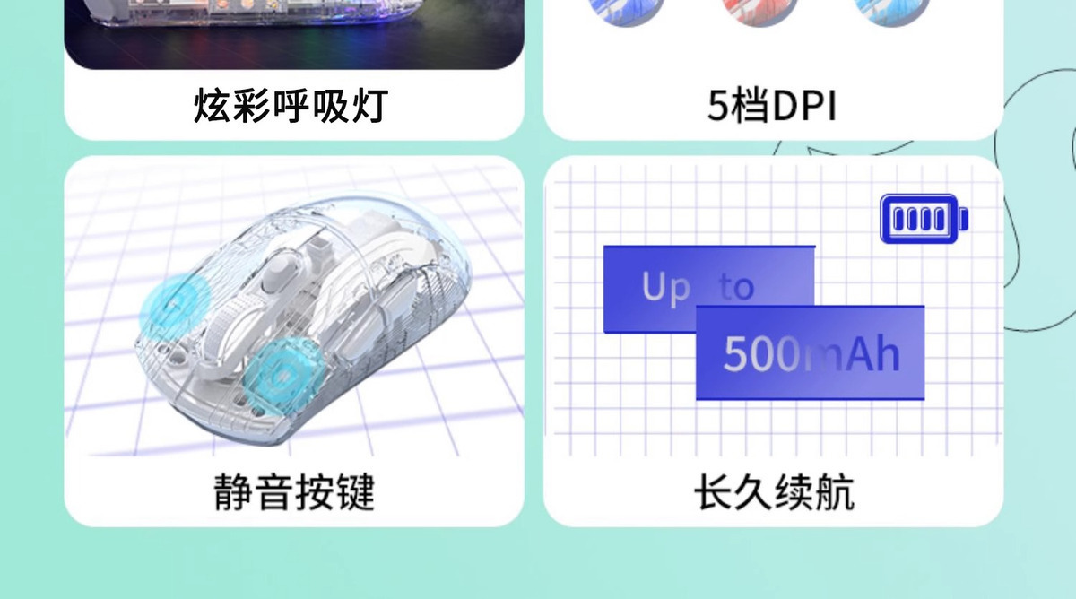 • 투명 마우스 [무선 + 블루투스 + 유선 3 모드]