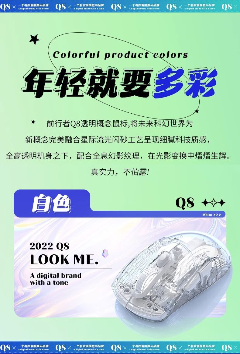 Forerunner Q8 투명 크리스탈 게이밍 마우스 매트 마우스 주변 장치 유선 무선 음소거 6 단 속도 조정 마우스