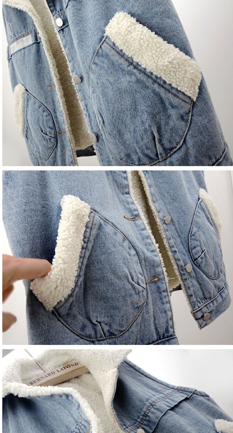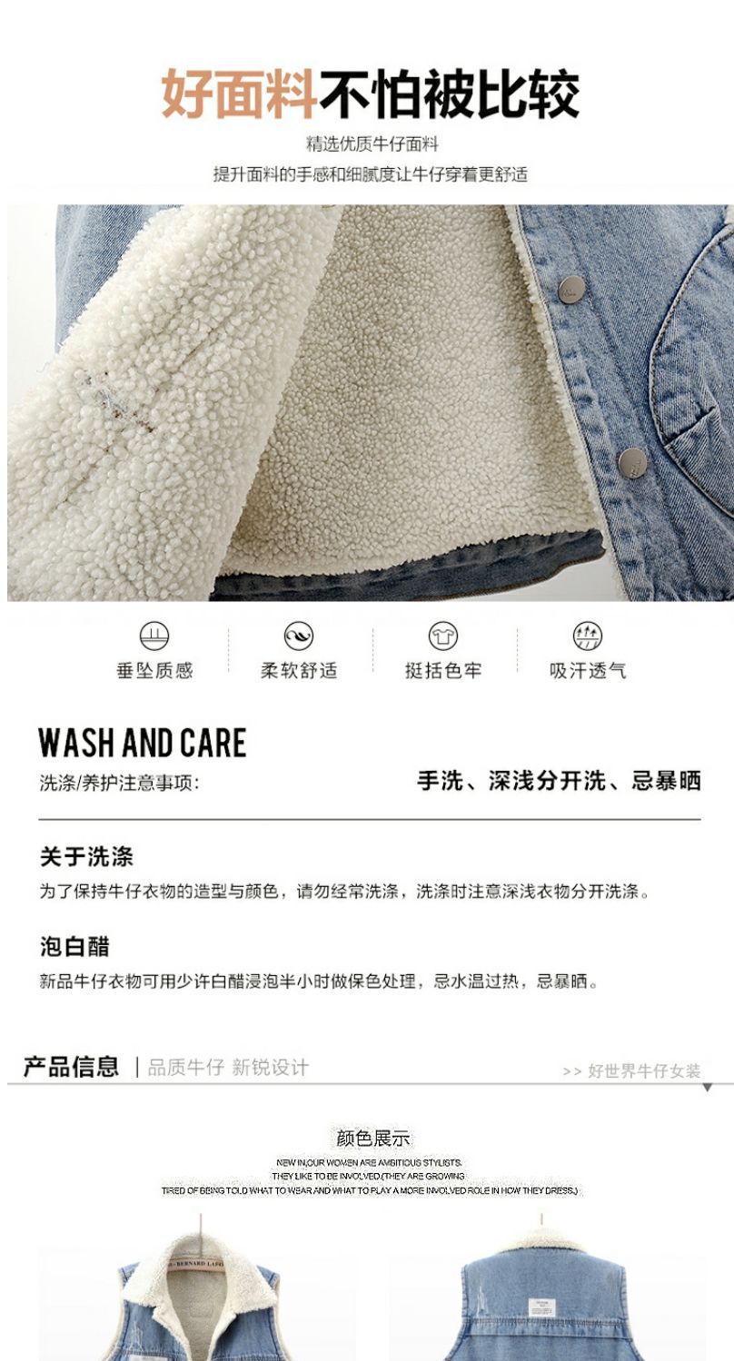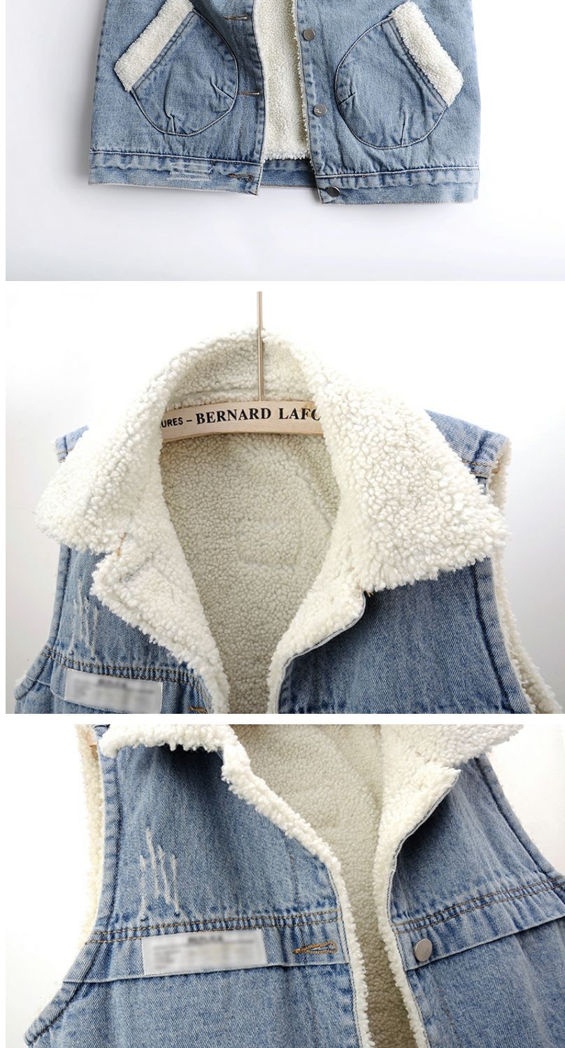 가을과 겨울 양모 기모 두꺼운 패치 데님 조끼 여성 느슨한 한국식 면화 조끼 조끼 양복 조끼스토어 가기