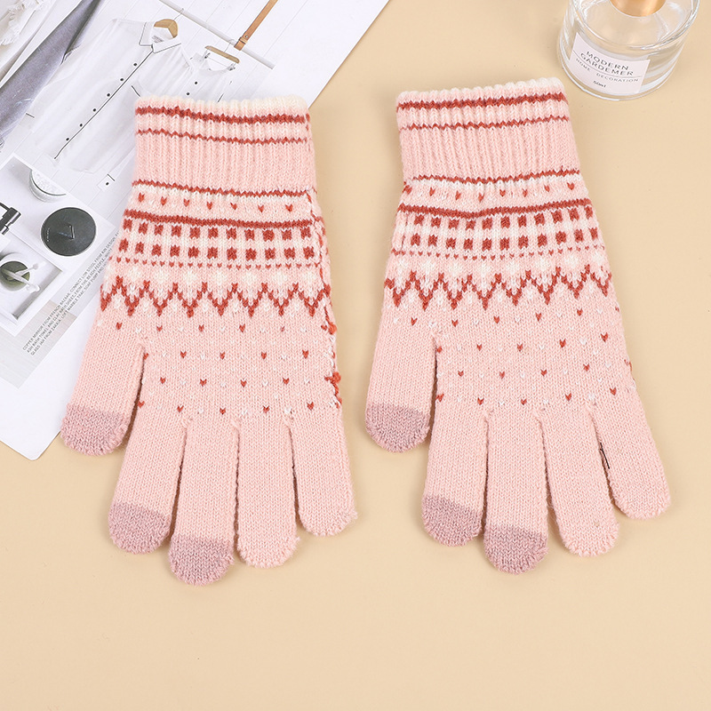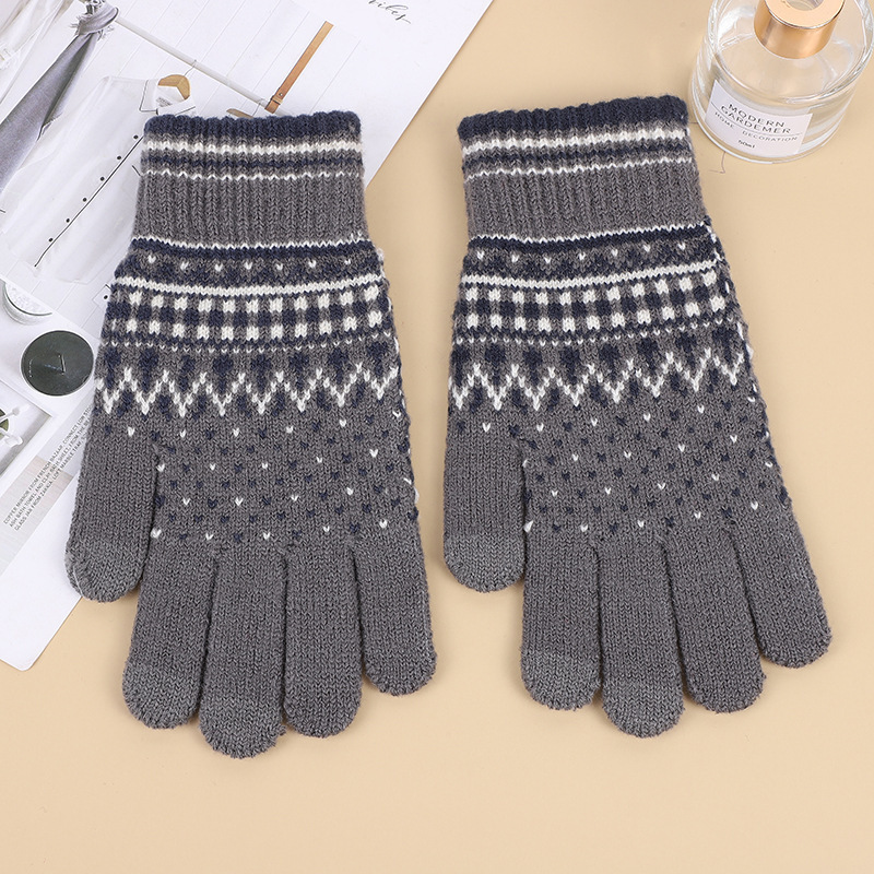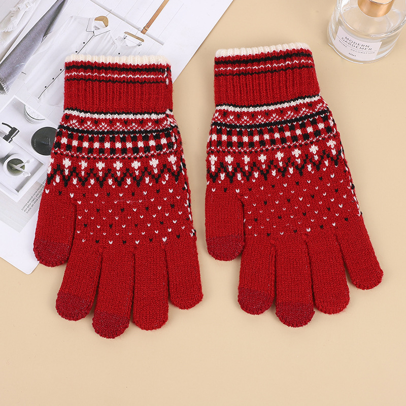 아마존 크로스 보더 니트 터치 스크린 장갑 가을과 겨울 자카드 5 손가락 장갑 따뜻한 도매공장 직판스토어 가기