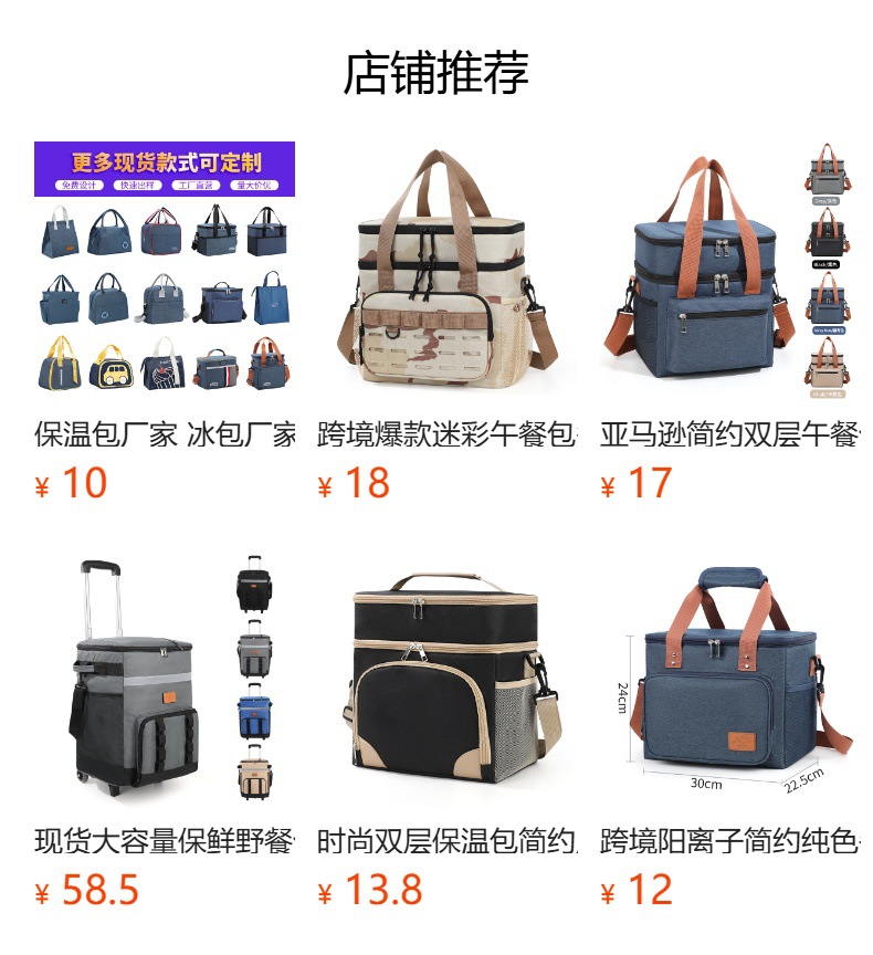 신제품 해외 아마존 인기상품 도시락 가방 대용량 아이스팩 이중층 야외 보온 가방스토어 가기