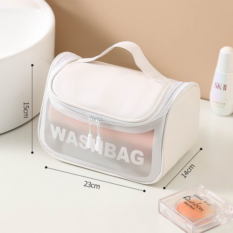 PVC 젖빛 투명 방수 후크 워시 가방 여행 휴대용 후크 플립 커버 대용량 화장품 보관 가방스토어 가기