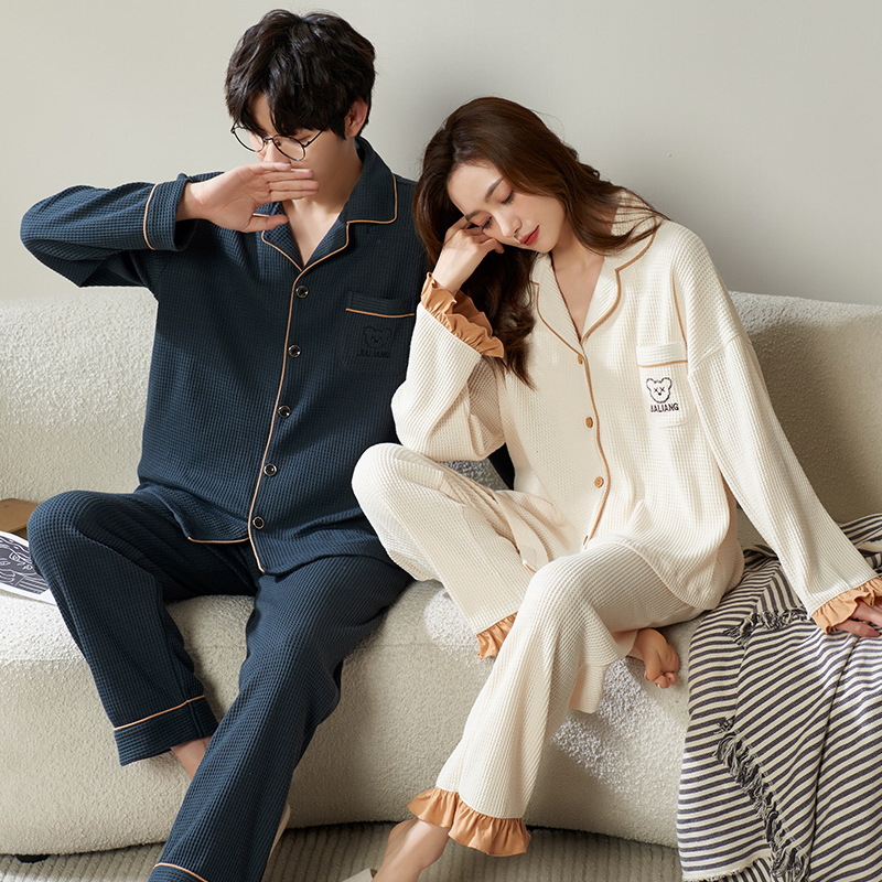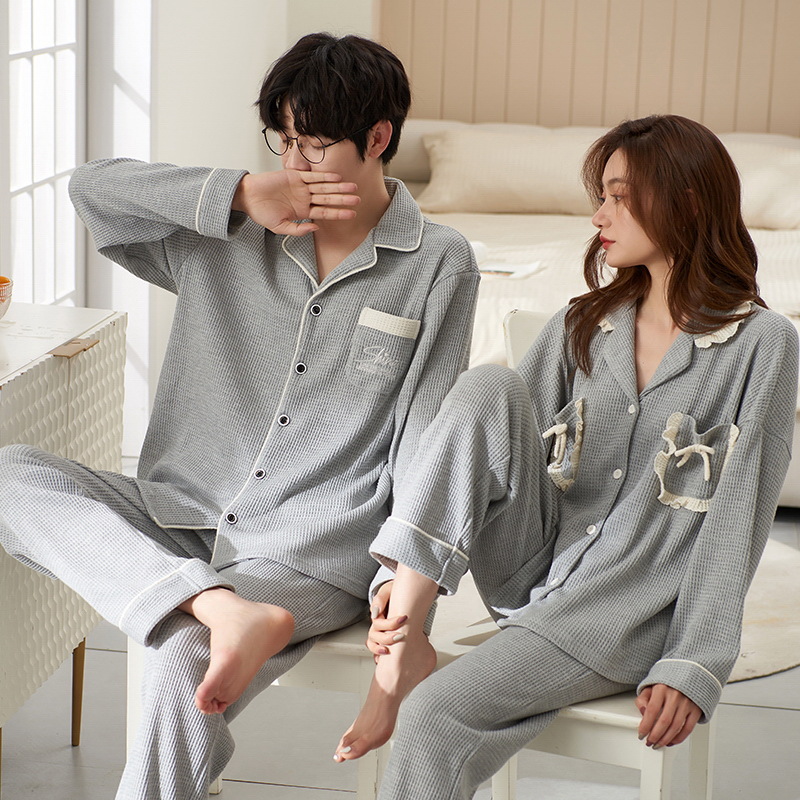 커플 잠옷 옷깃 가디건 긴 소매 면 한국 스타일 귀여운 여자의 플러스 사이즈 남자의 가을과 겨울 홈웨어 겉옷스토어 가기