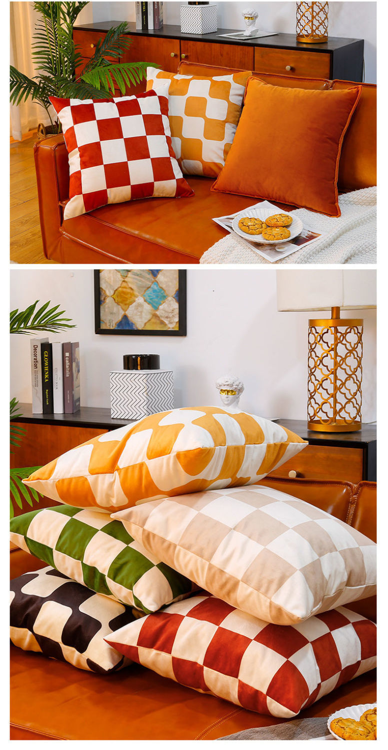 벨벳 베개 커버 체커보드 패턴 침대 옆 소프트 쿠션 오피스 쿠션 등받이 소파 베개 미니멀리스트 스타일