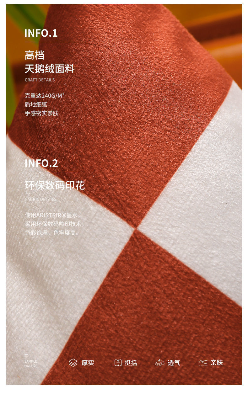 高品质天鹅绒底布(240g/㎡ 柔软舒适)+高清数码印花