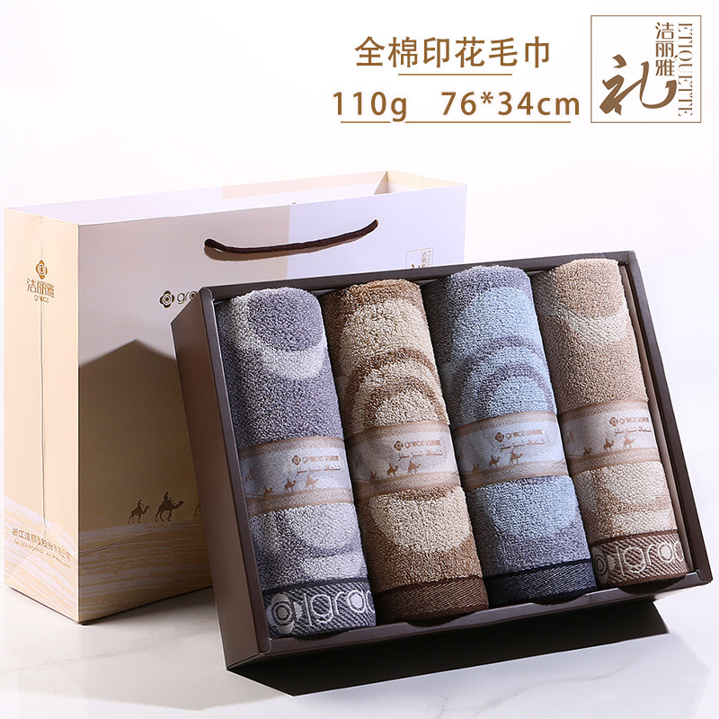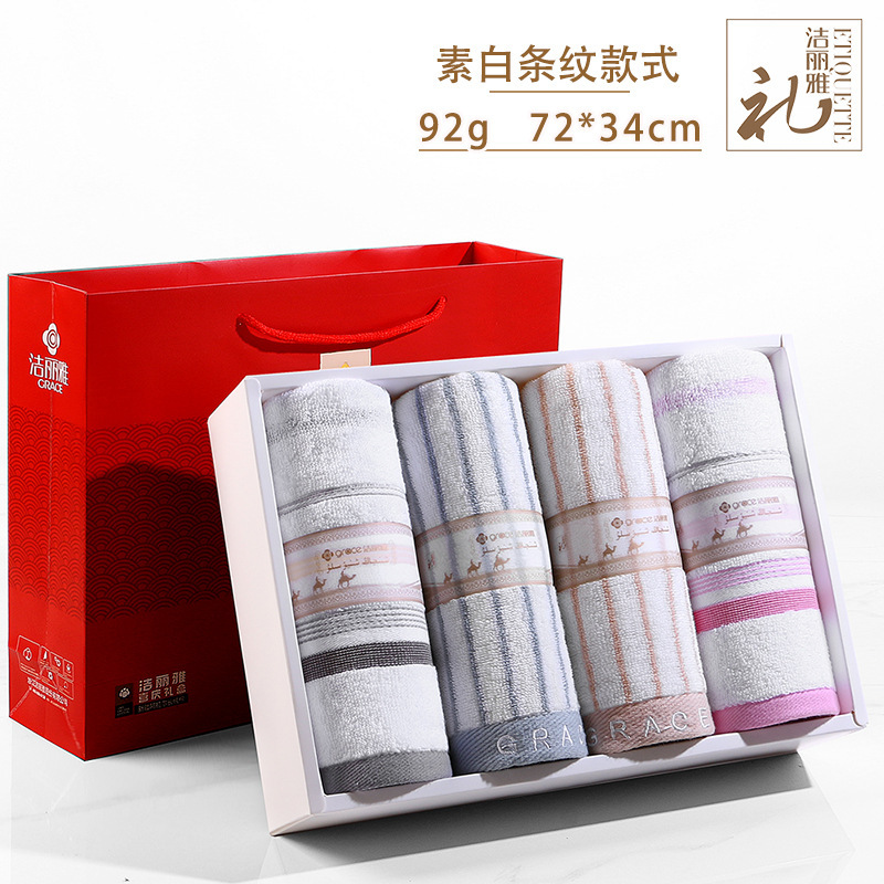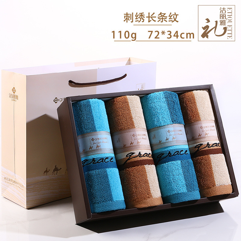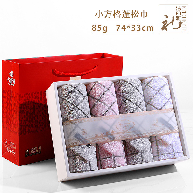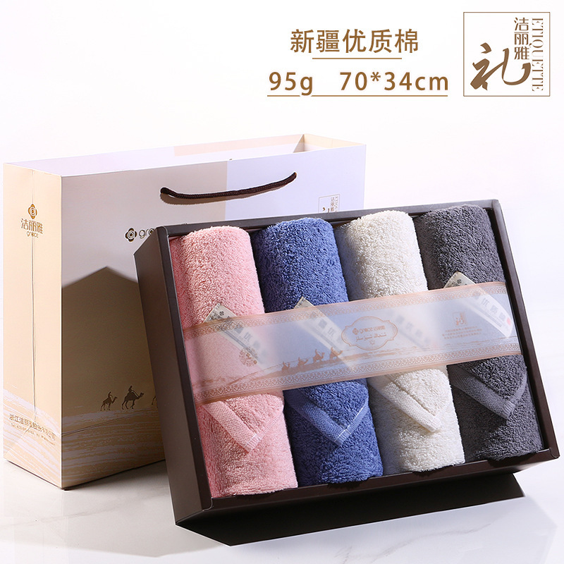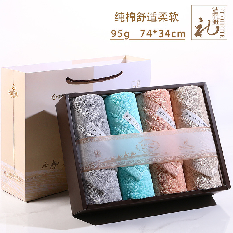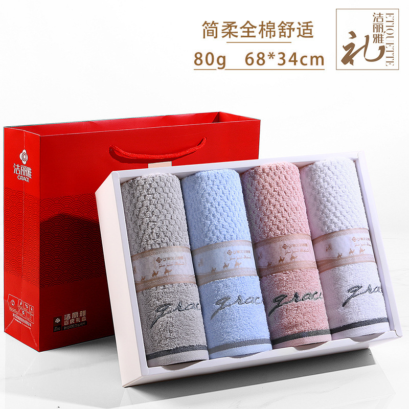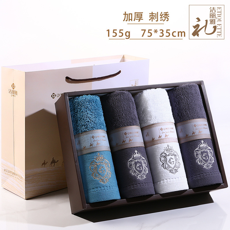 Jielia 수건 선물 상자 세트 면 도매 비즈니스 선물 결혼 선물 자수 단어 선물 상자 수건 면