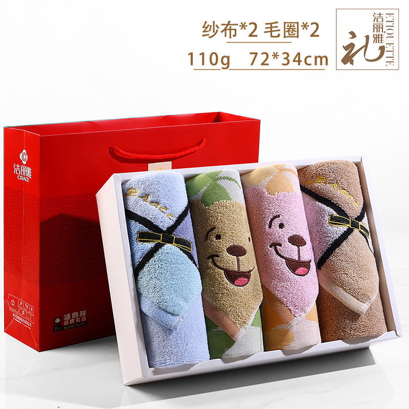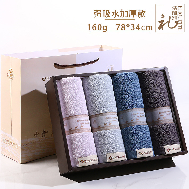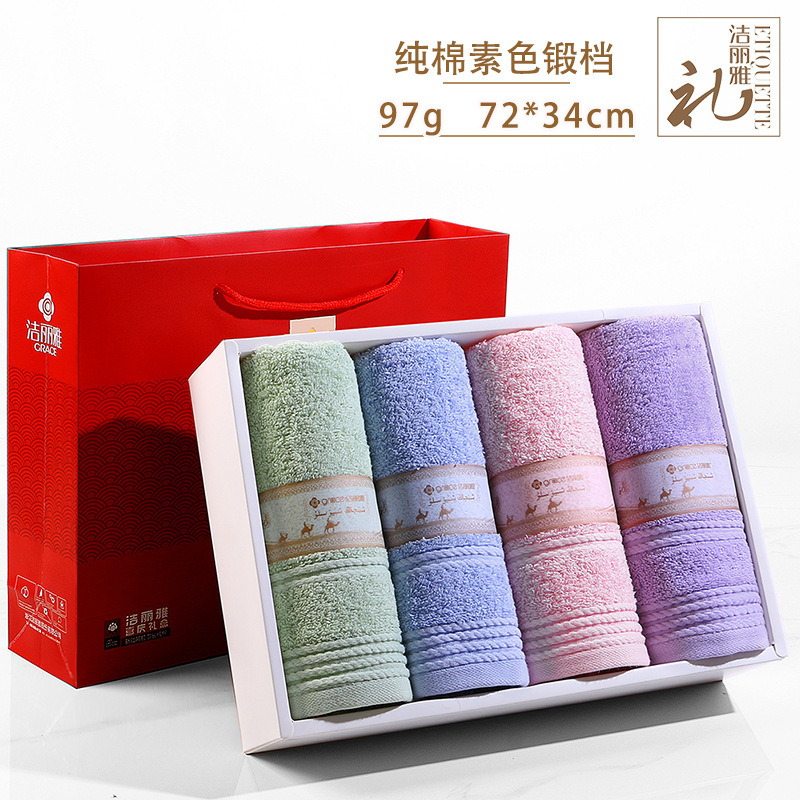Jielia 수건 선물 상자 세트 면 도매 비즈니스 선물 결혼 선물 자수 단어 선물 상자 수건 면스토어 가기