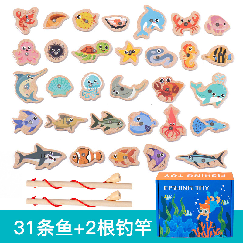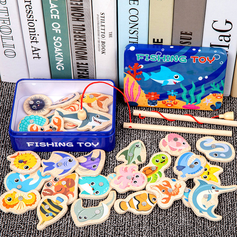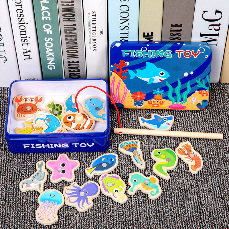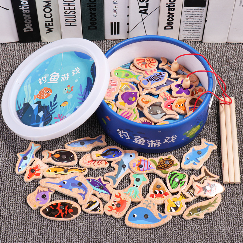 나무 배럴 바다 낚시 장난감 어린이 조기 교육 교육인지 재미 자기 바다 물고기 부모-자식 게임스토어 가기