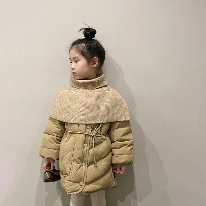 여아 겨울 옷 새로운 한국 스타일 유행 웜 다운 재킷 중간 길이 재킷 모든 일치 기모 레깅스 유행
