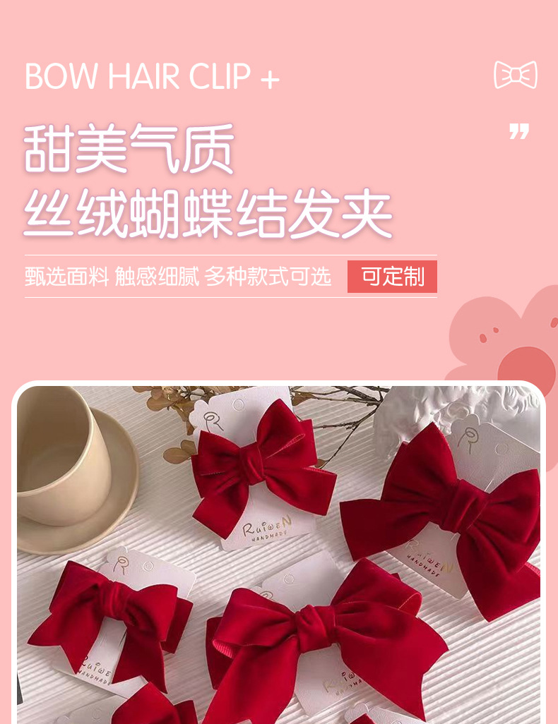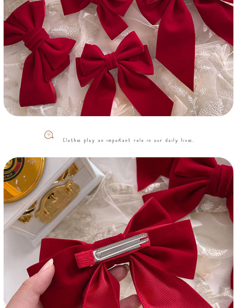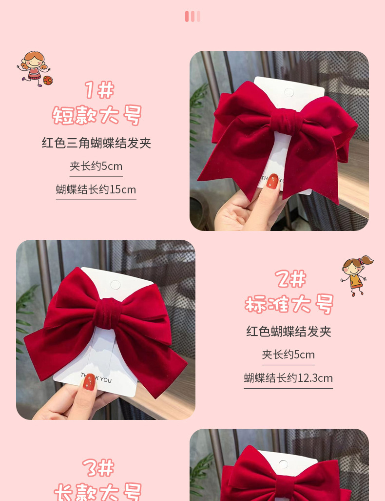 여아용 빨간 나비 머리핀, 가을 겨울 헤어 액세서리, 국경일 축하 머리핀, 우아하고 달콤한 기질의 탑 클립스토어 가기