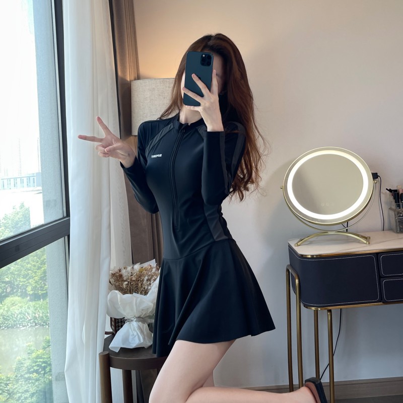 2024 새로운 스포츠 수영복 여성용 원피스 긴 소매 벨리 커버 슬림 스커트 온천 수영복 수영복 도매스토어 가기
