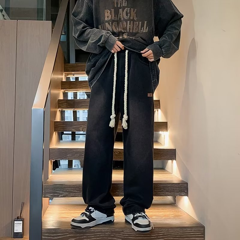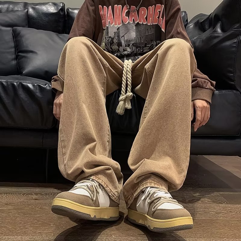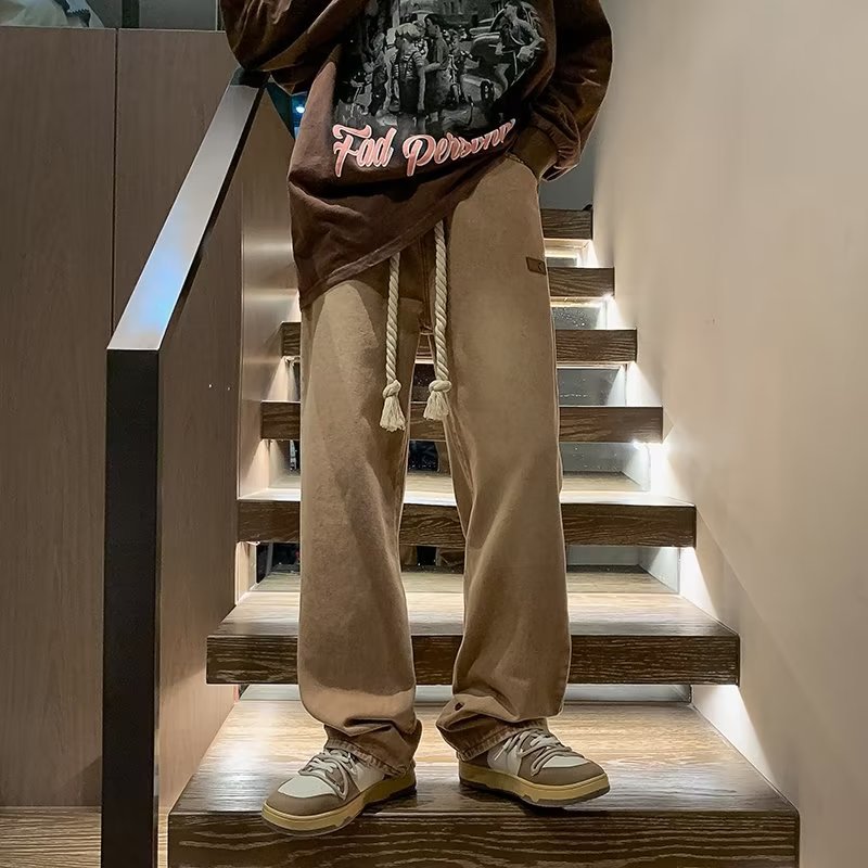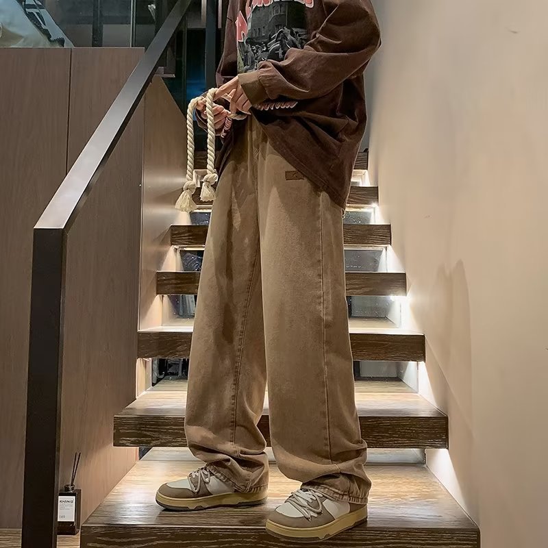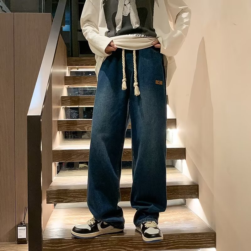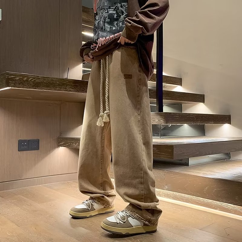 스트레이트 남성 청바지 가을과 겨울 미국 복고풍 씻어 하이 스트리트 분위기 패션 캐주얼 바지 머리카락 세대
