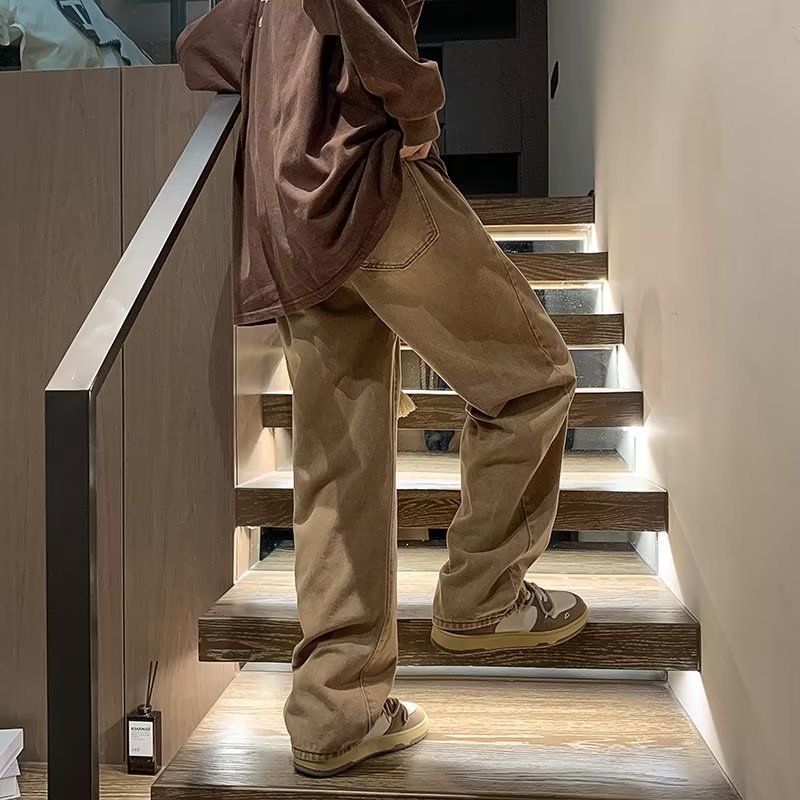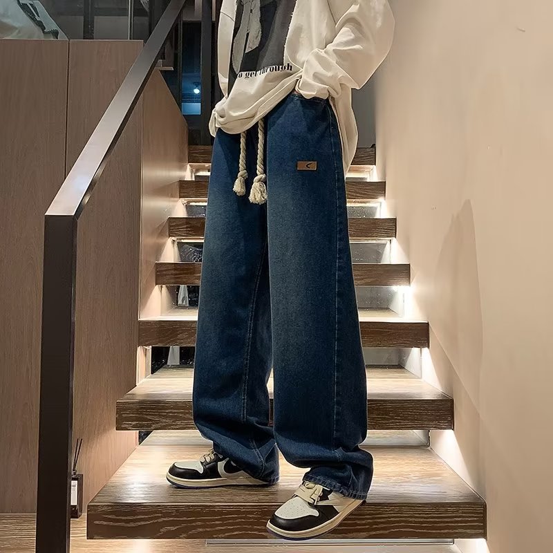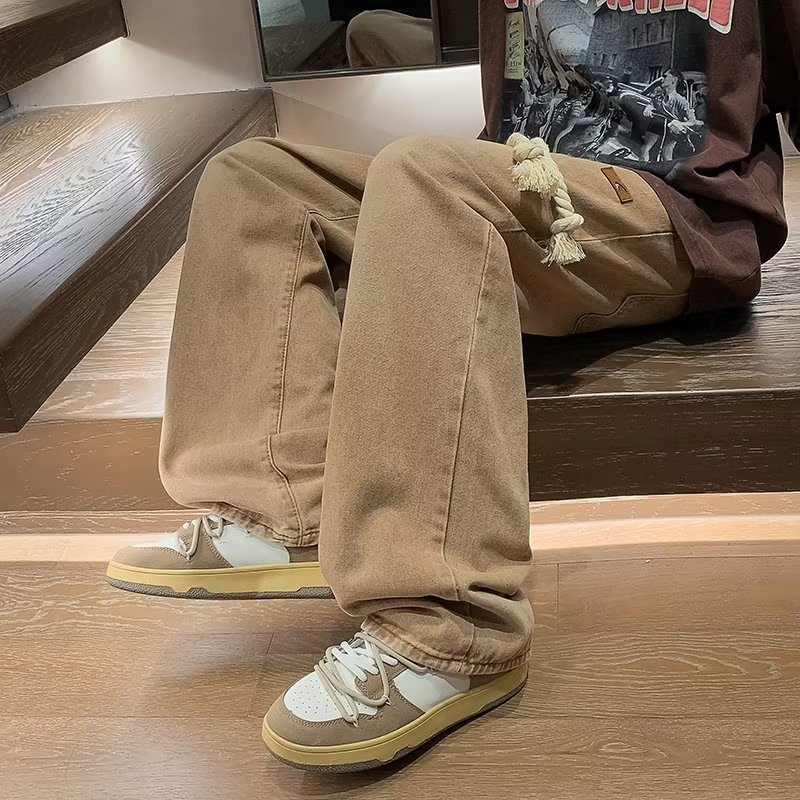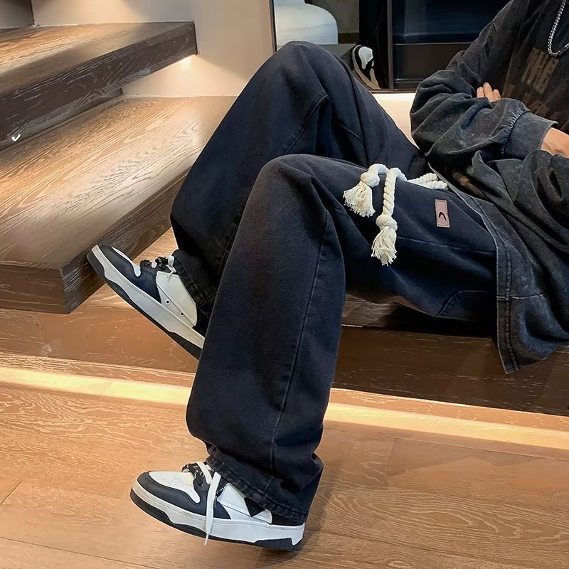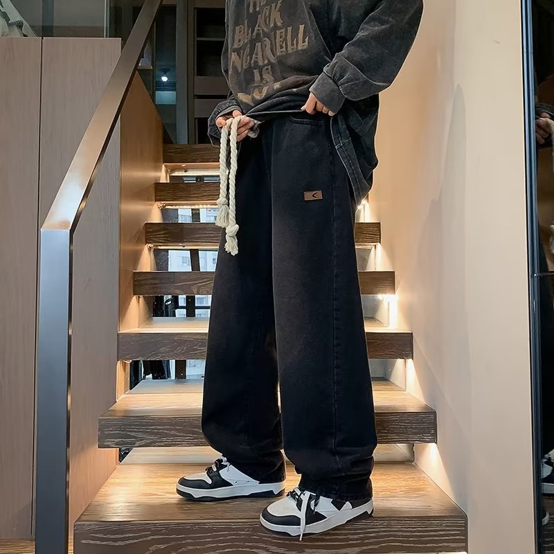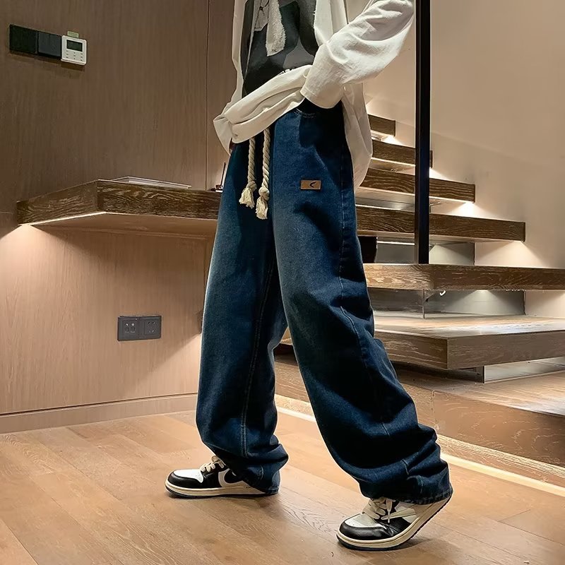 스트레이트 남성 청바지 가을과 겨울 미국 복고풍 씻어 하이 스트리트 분위기 패션 캐주얼 바지 머리카락 세대