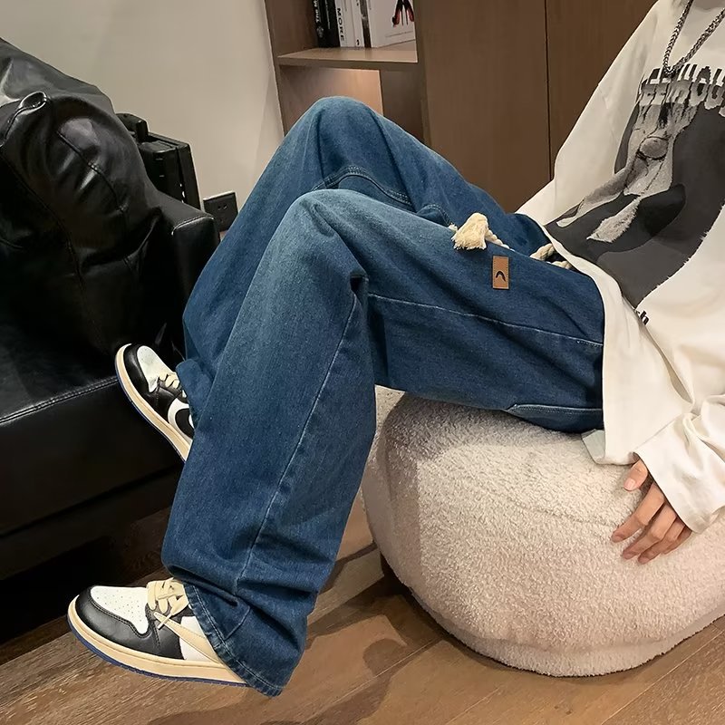 스트레이트 남성 청바지 가을과 겨울 미국 복고풍 씻어 하이 스트리트 분위기 패션 캐주얼 바지 머리카락 세대스토어 가기