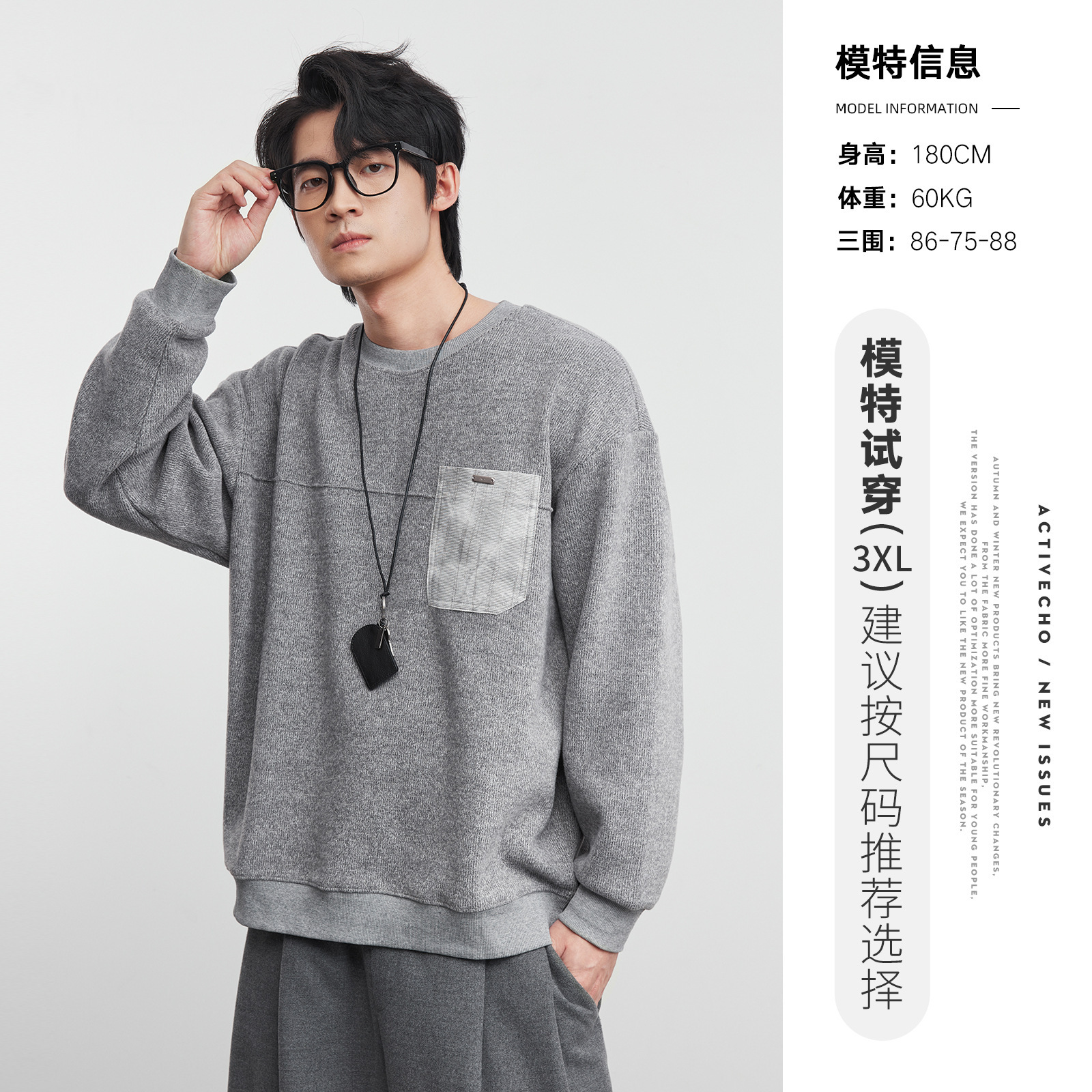 【69위안 1개】트렌디 브랜드 스웨트셔츠/남성용 라운드넥 스웨트셔츠 복주머니 스타일 선택 가능 남성복 스웨트셔츠스토어 가기