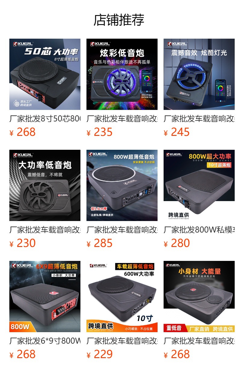 제조업체 도매 차량용 오디오 개조 알루미늄 벨트 고음 12V 소형 스피커 8inch 10inch 자동차 초박형 서브우퍼스토어 가기