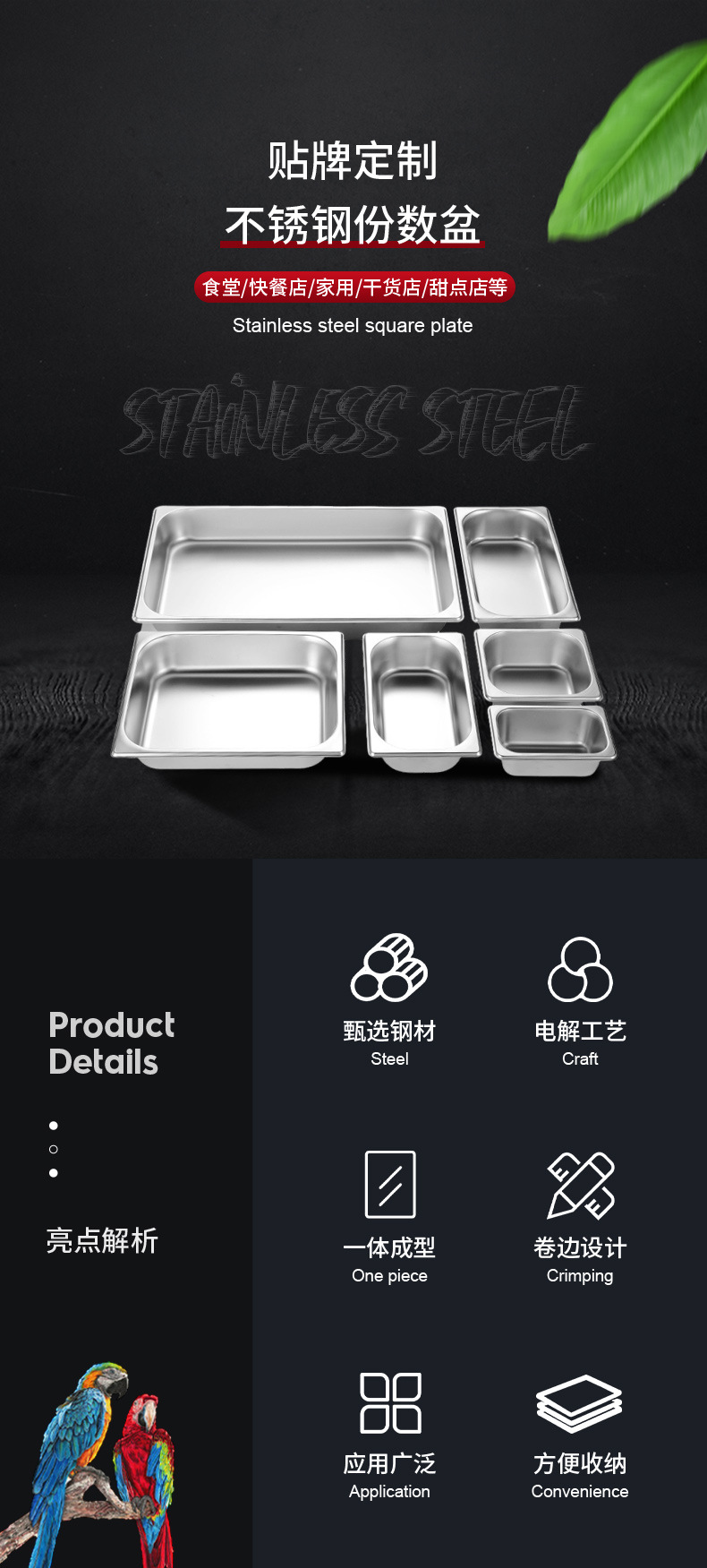 부분 분지 스테인레스 스틸 분지 뚜껑이있는 직사각형 정사각형 분지 뷔페 분지 플레이트 점수 접시 우유 차 가게 잼 상자