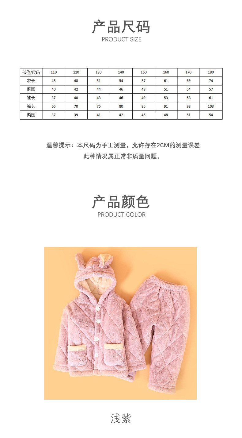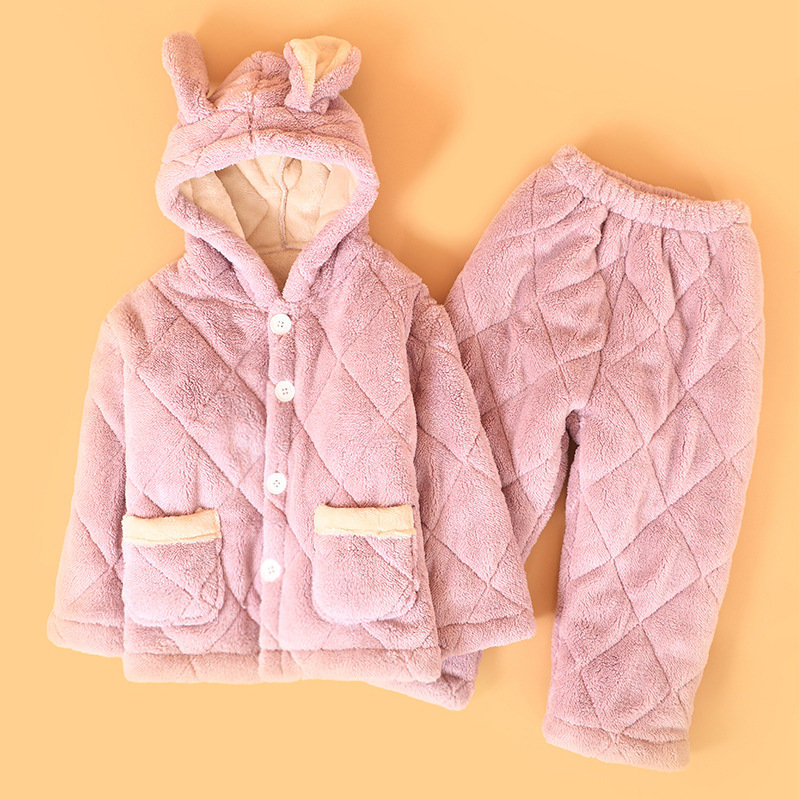어린이 잠옷 가을과 겨울 기모 두꺼운 면 패딩 재킷 면 패딩 바지 여아 여성 가정복 중대형 어린이 따뜻한 옷 어머니의 드레스스토어 가기