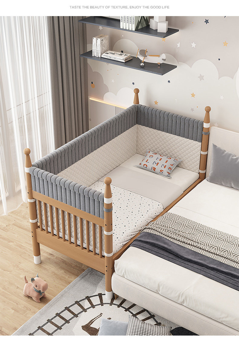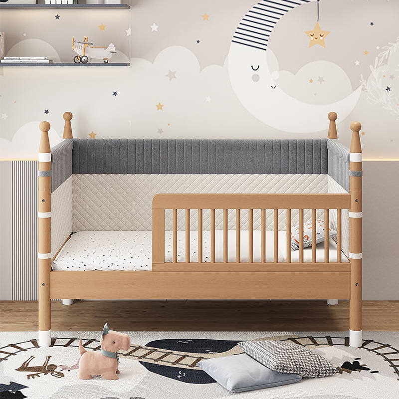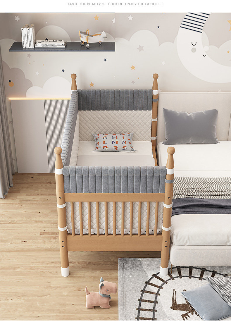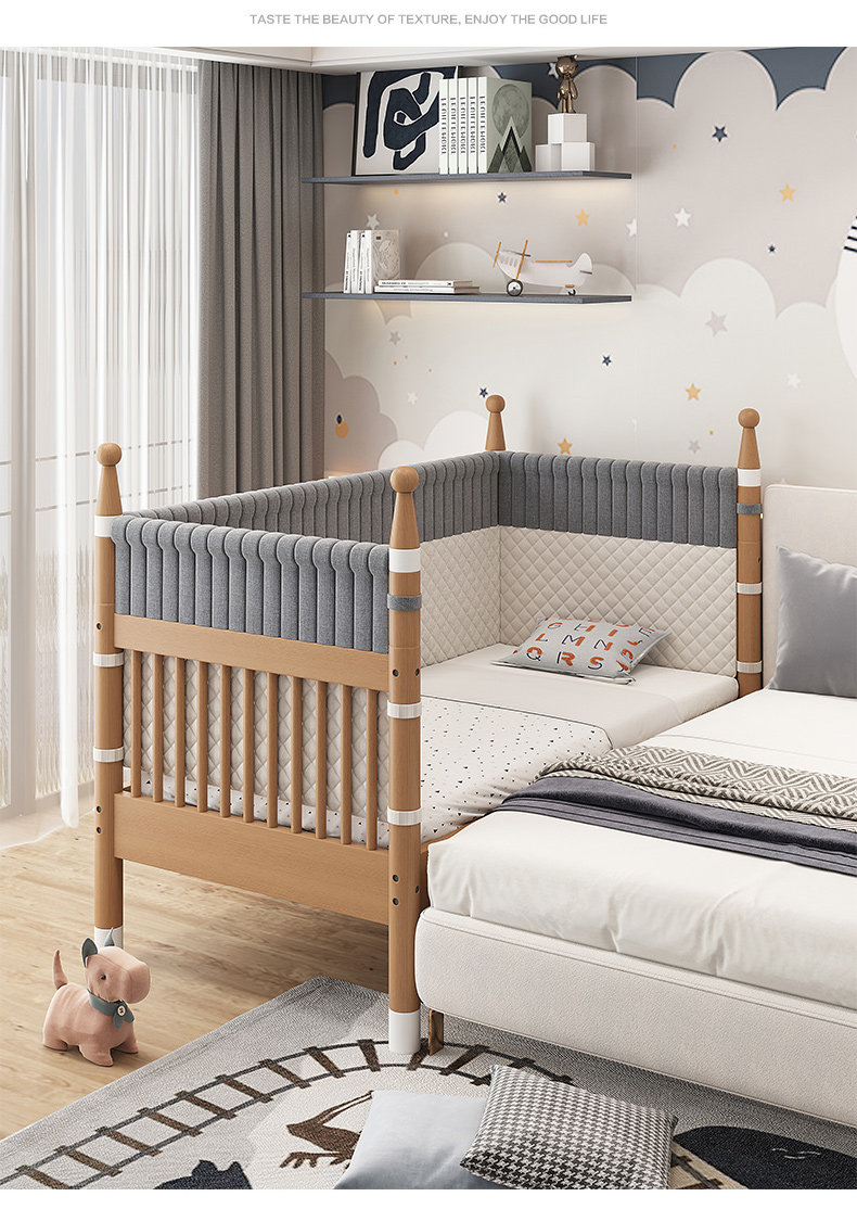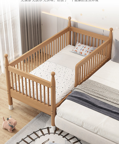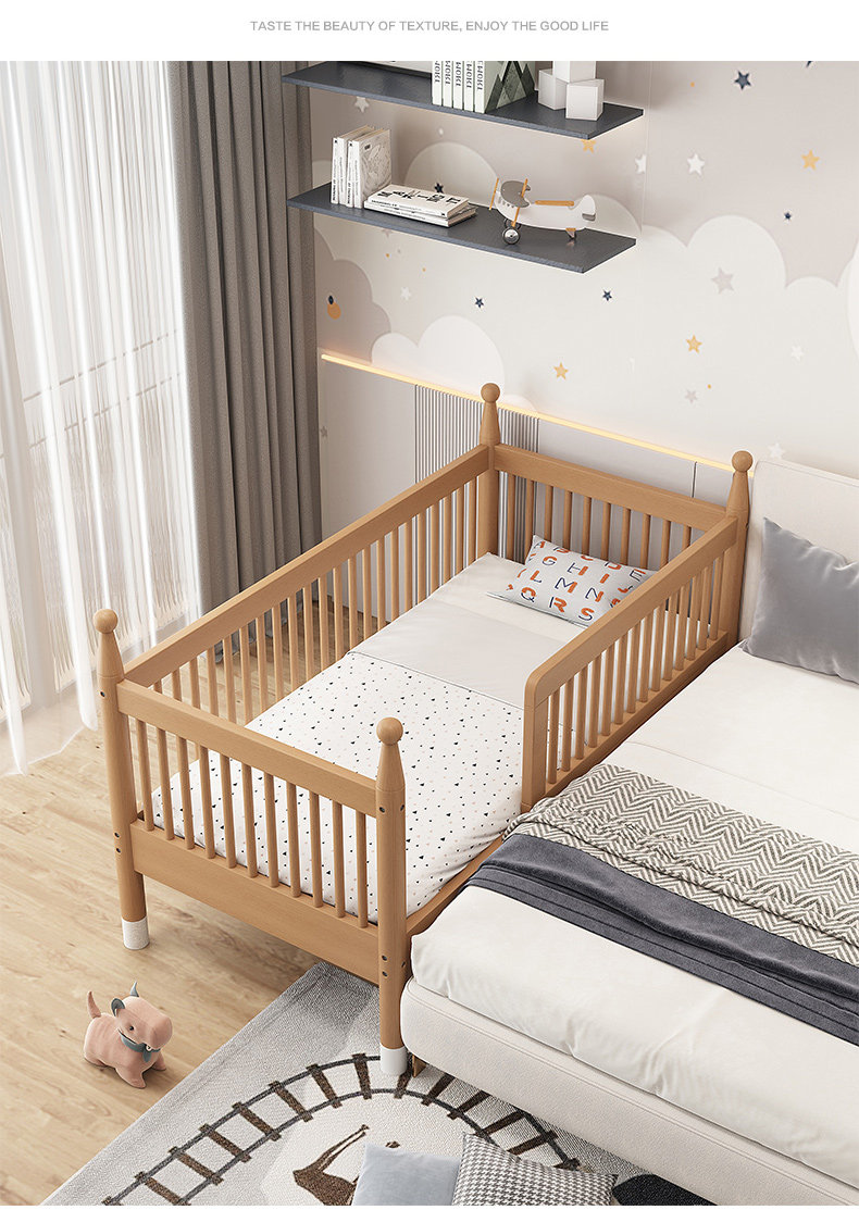 너도밤 나무 접합 침대 어린이 침대 단단한 나무 침대 아기의 큰 침대 난간 높이 조절이 가능한 넓은 침대 옆