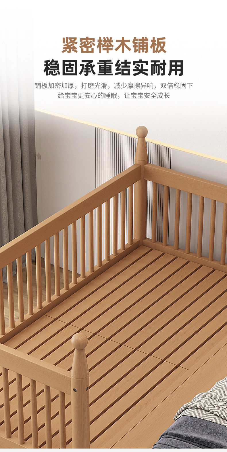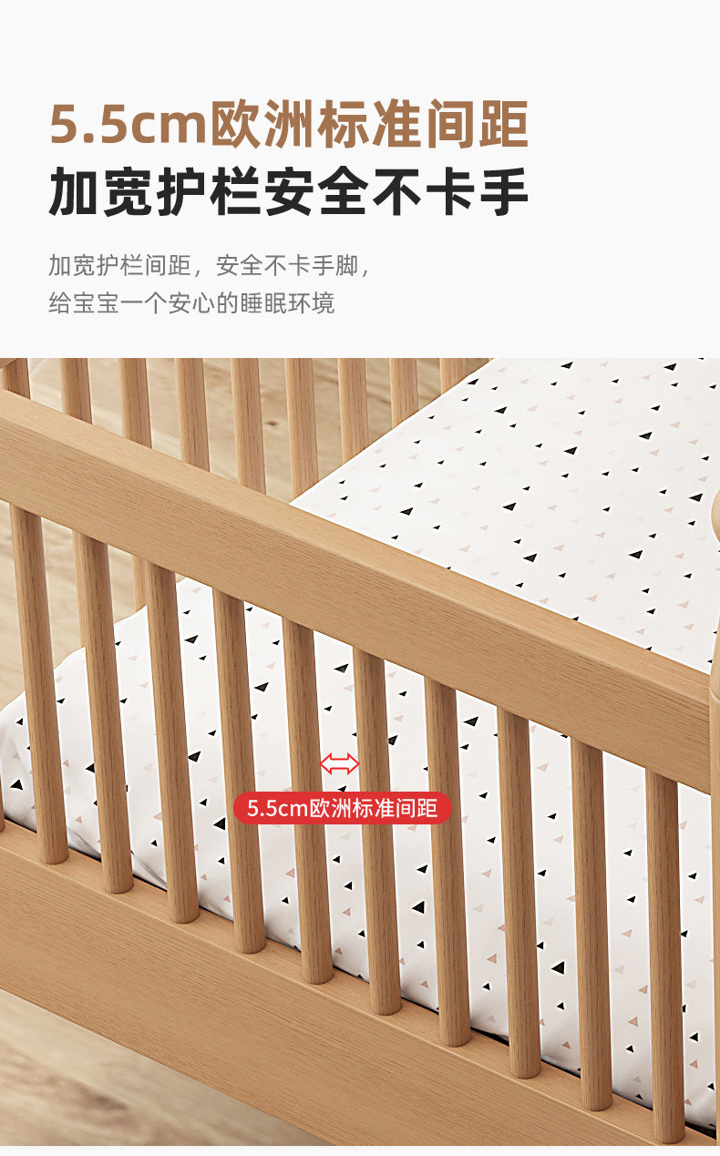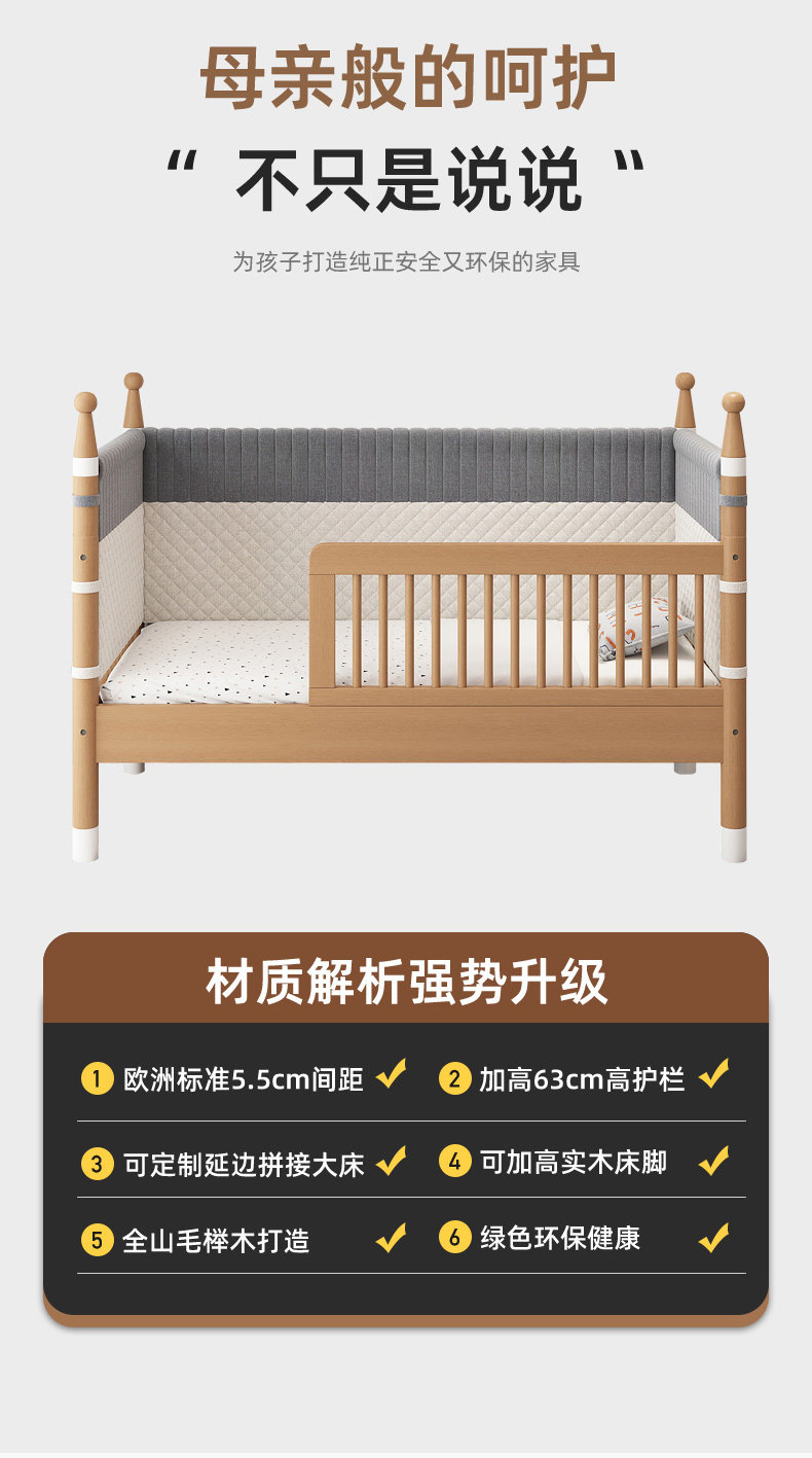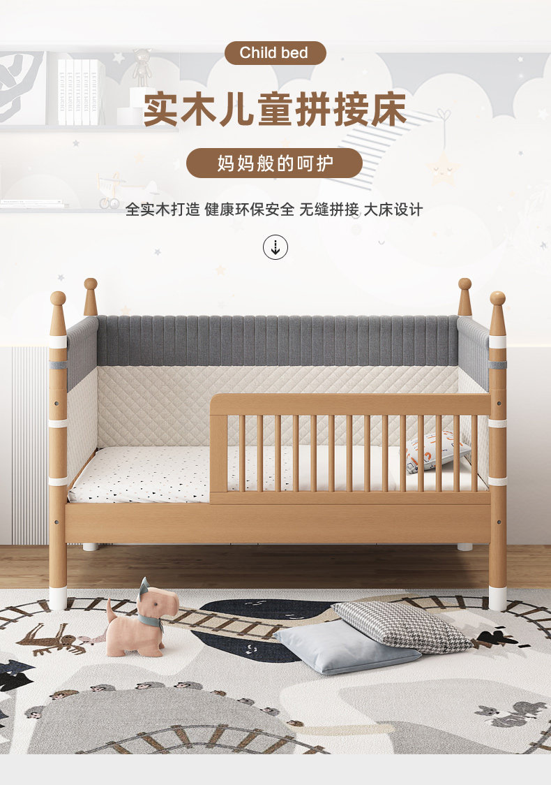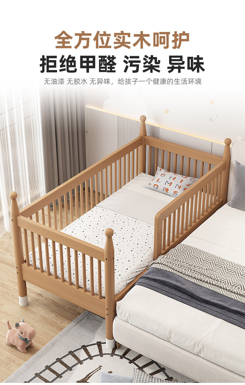너도밤 나무 접합 침대 어린이 침대 단단한 나무 침대 아기의 큰 침대 난간 높이 조절이 가능한 넓은 침대 옆