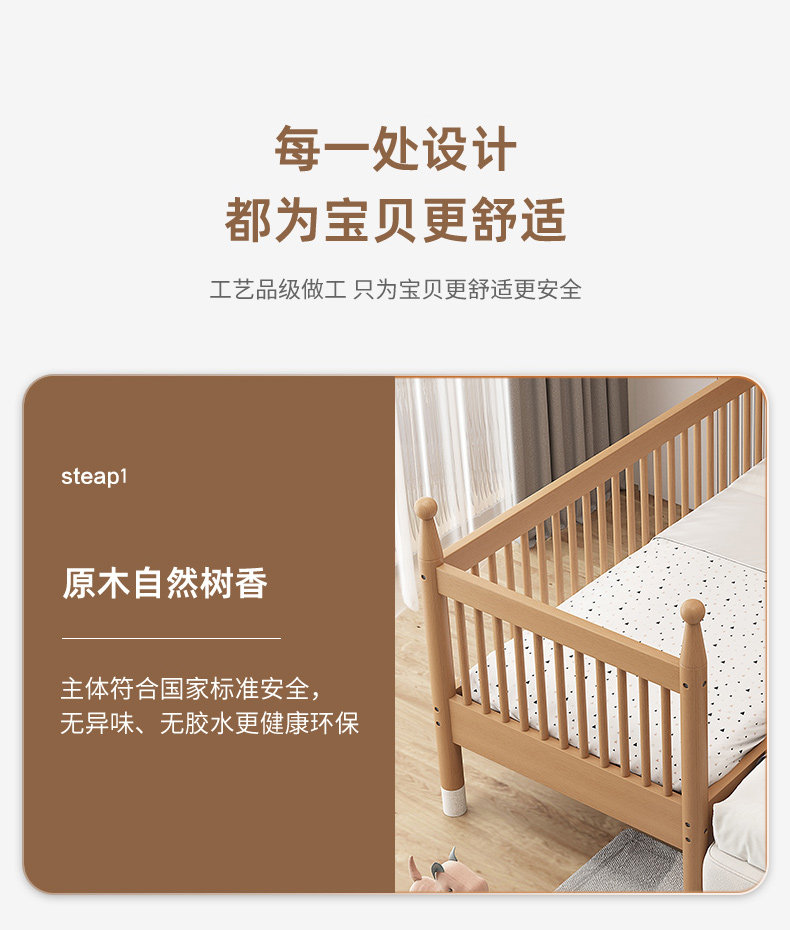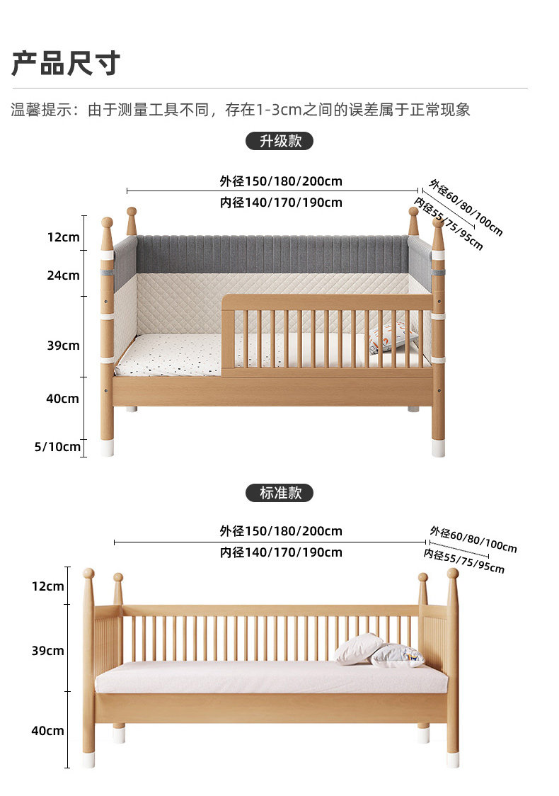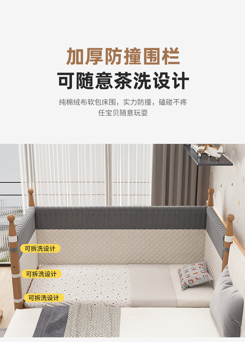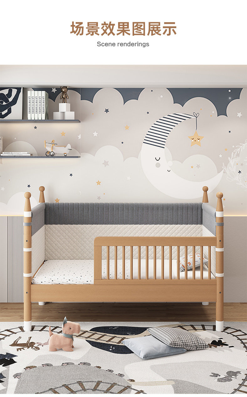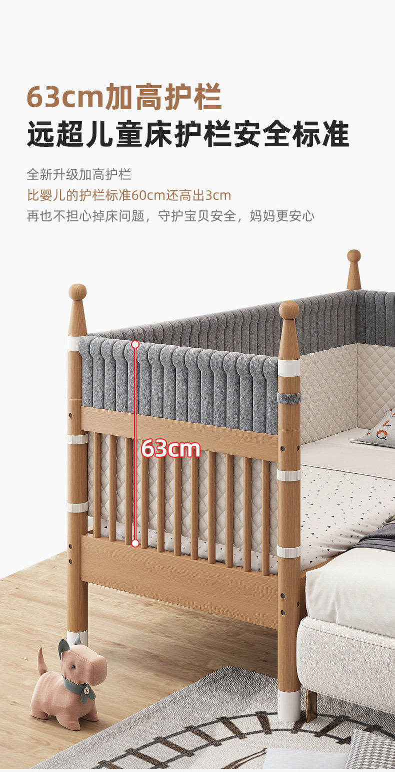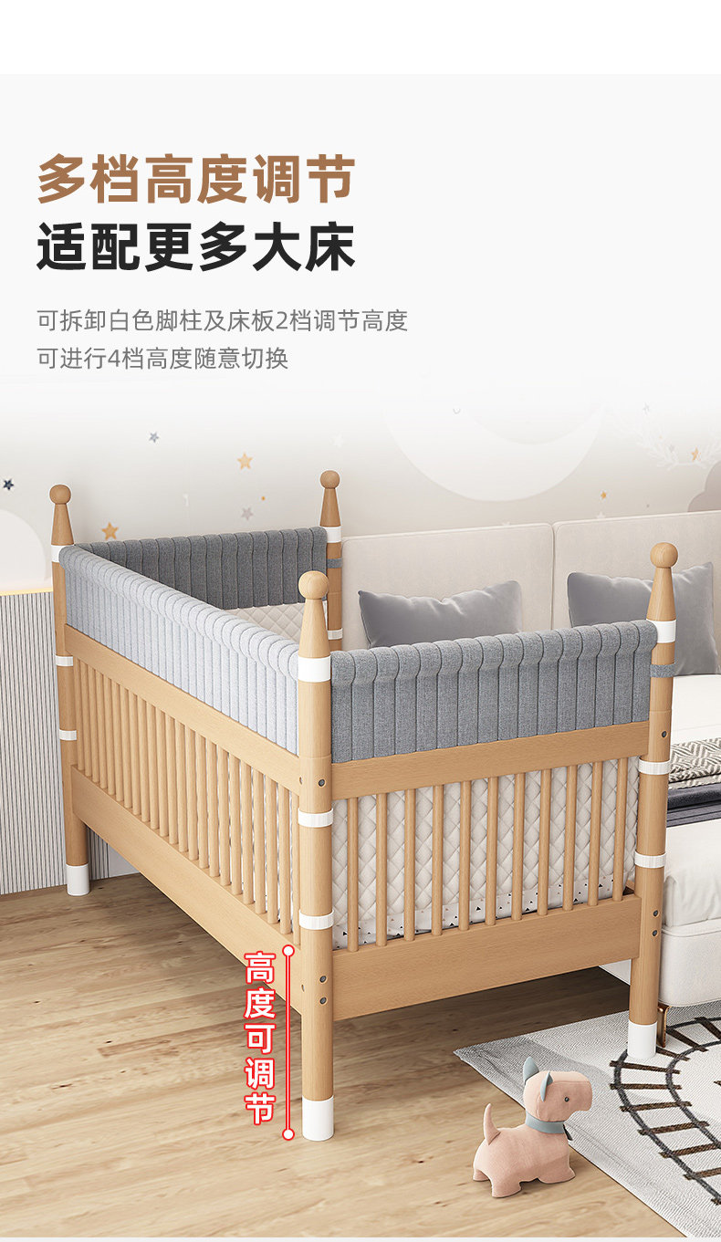 너도밤 나무 접합 침대 어린이 침대 단단한 나무 침대 아기의 큰 침대 난간 높이 조절이 가능한 넓은 침대 옆스토어 가기
