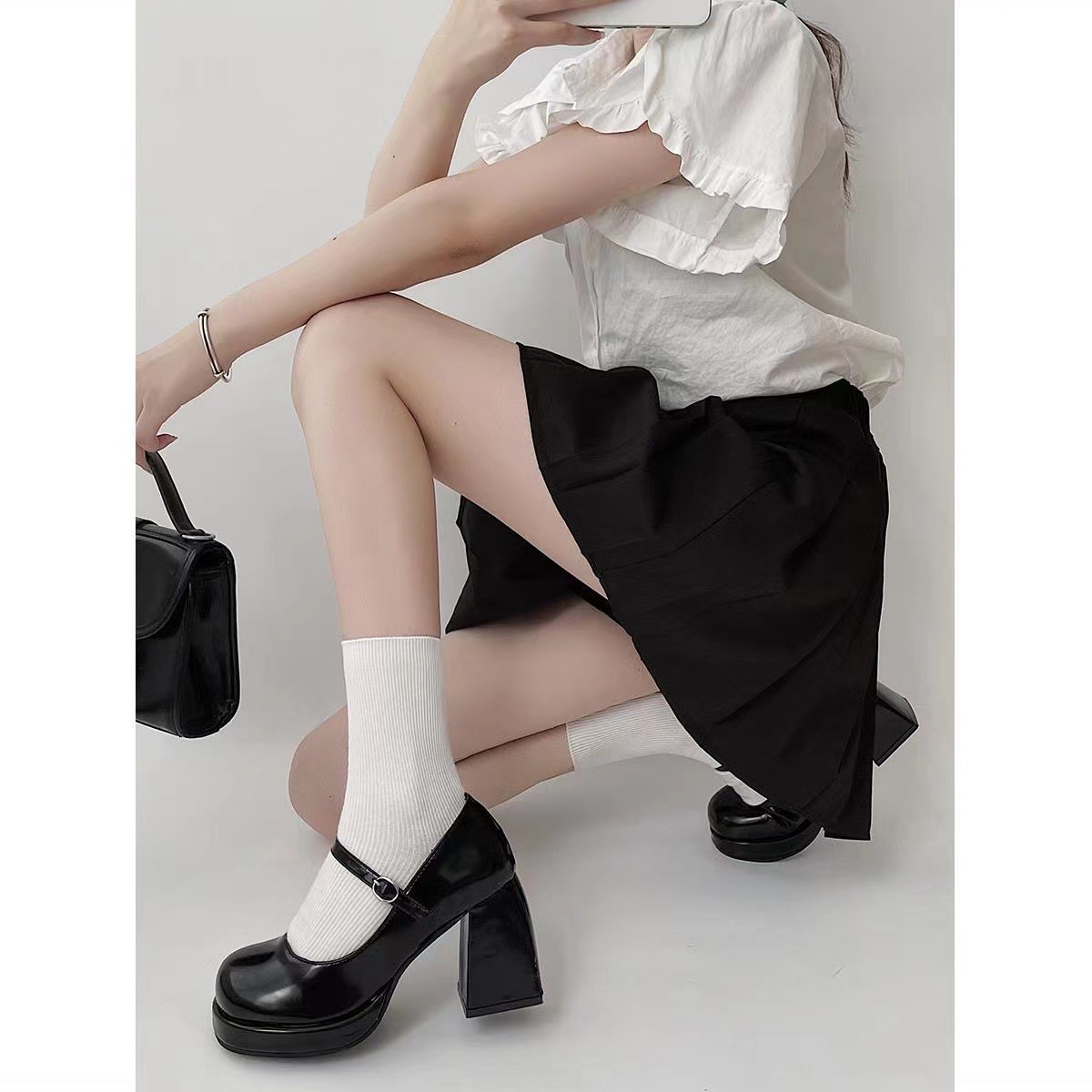 메리 제인 신발 여자의 두꺼운 단독 2022 가을과 겨울 새로운 두꺼운 뒤꿈치 폭발 부드러운 바람 버클 하이힐 플러스 사이즈스토어 가기