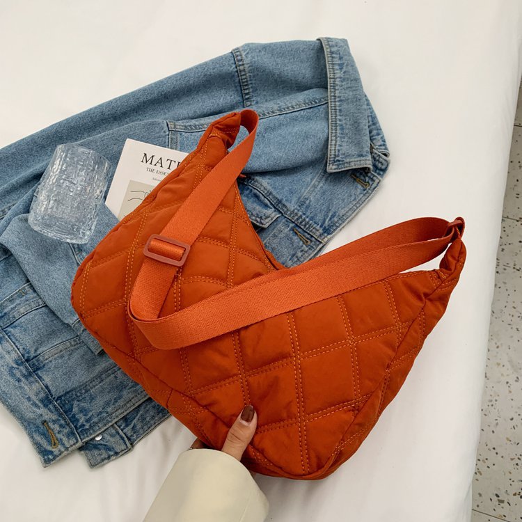 코튼 패딩 자켓 만두 백 여성 가을과 겨울 큰면 가방 공간 코튼 다운 백 마름모 자수 싱글 숄더 메신저 백