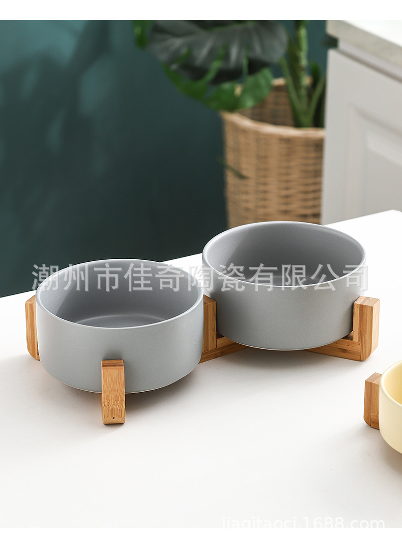 • 편평한 입 이중 그릇 + 나무 스탠드 - 회색