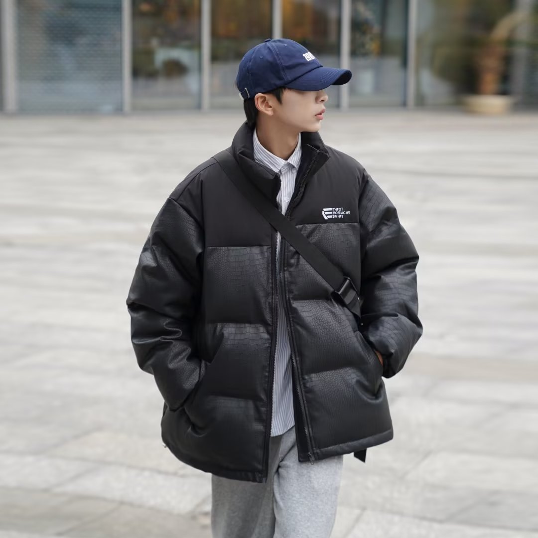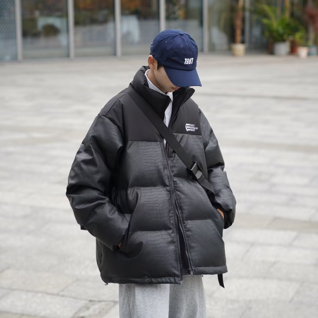 2022 빵 의류 느슨한 악어 가죽 코튼 패딩 재킷 하라주쿠 바람 느슨한 대비 컬러 코트 재킷 조수 머리카락의 세대스토어 가기