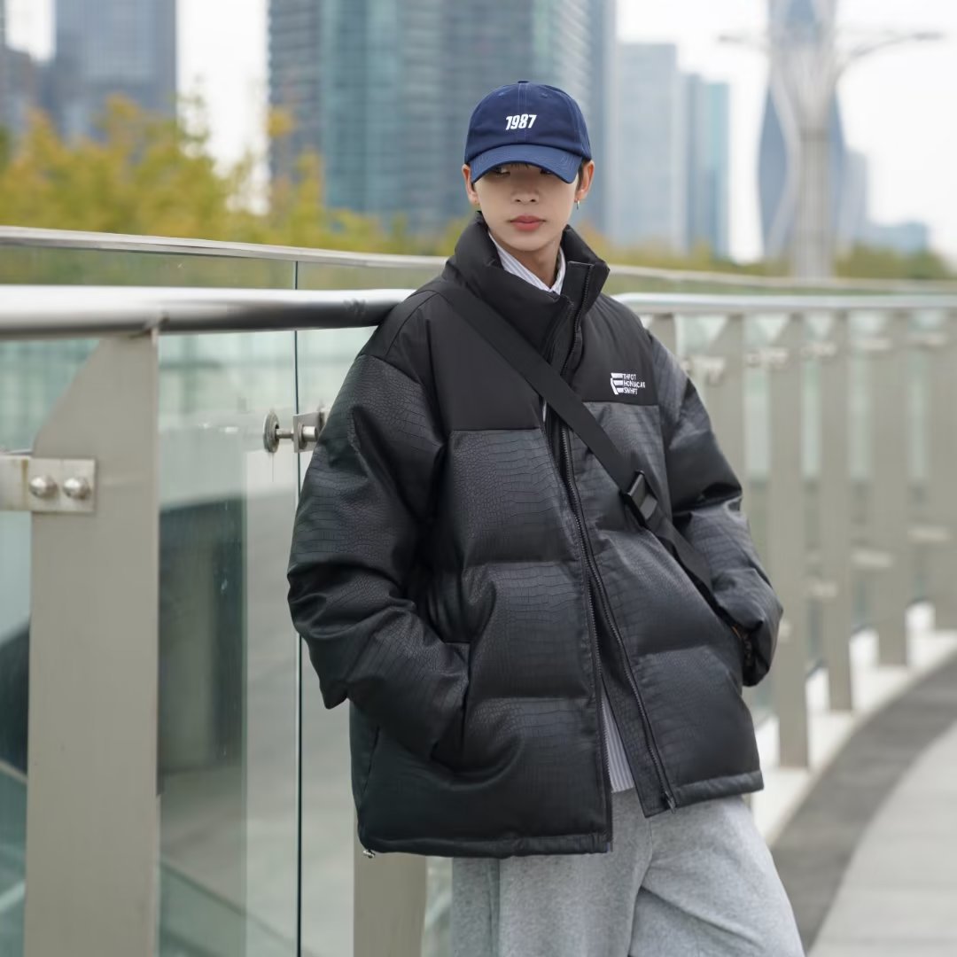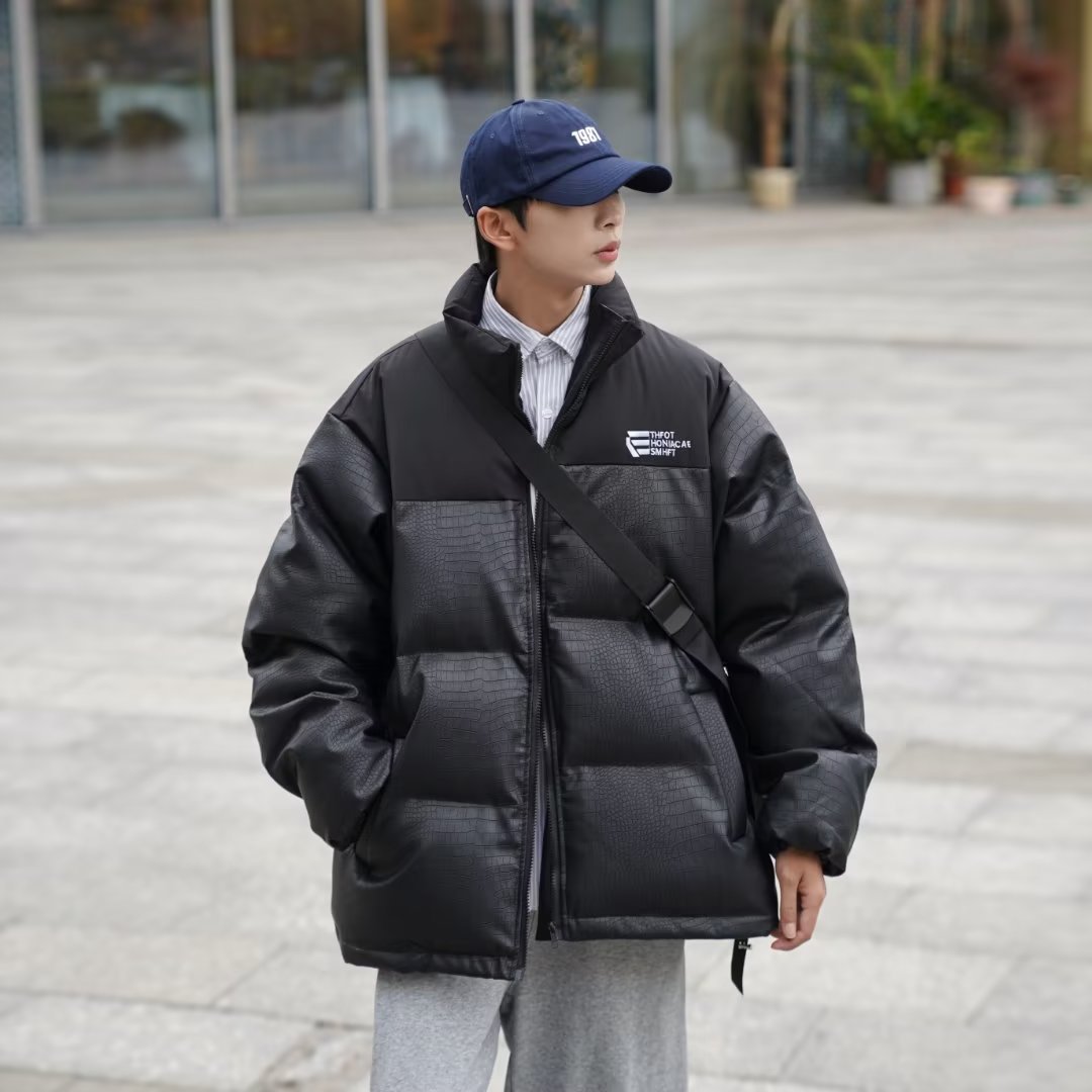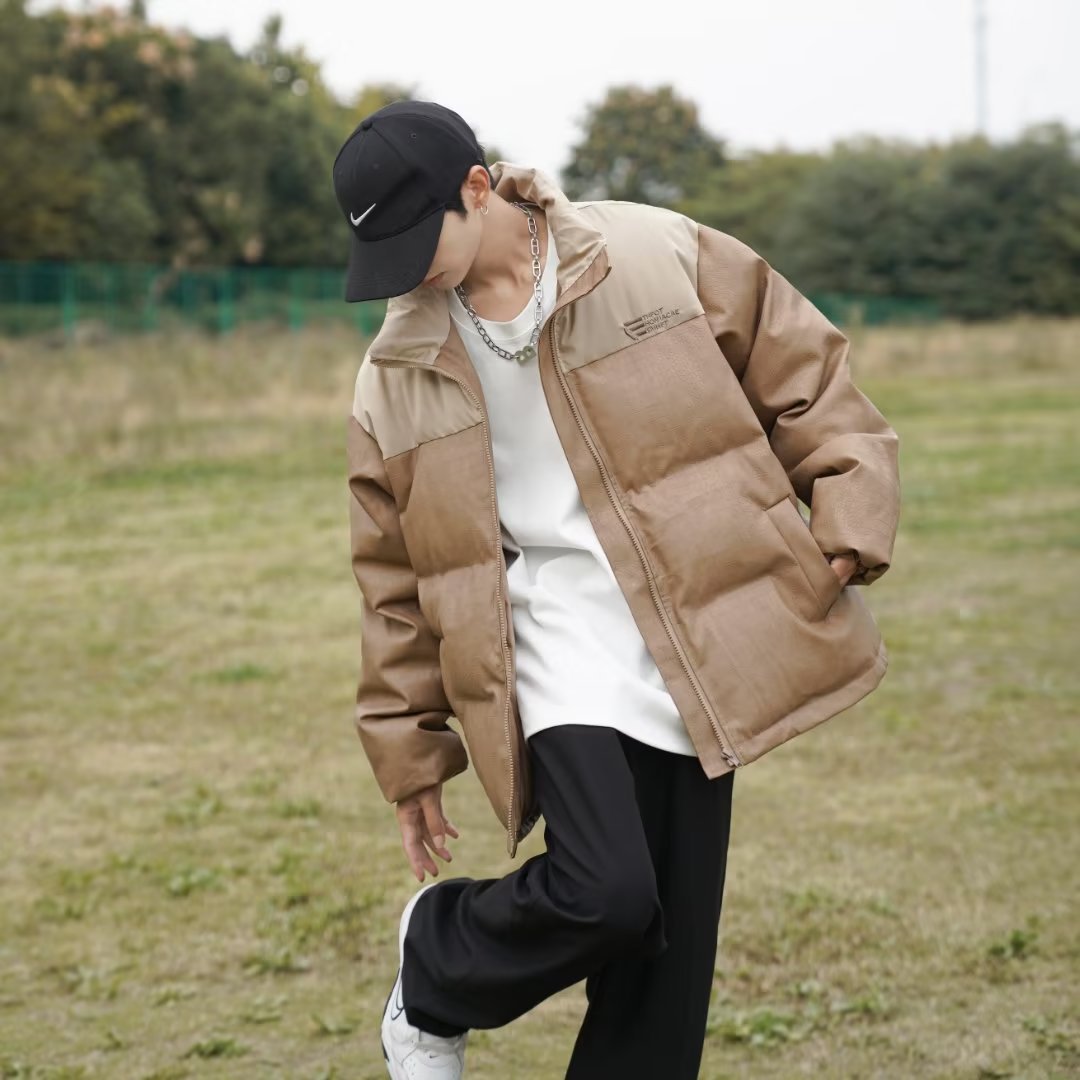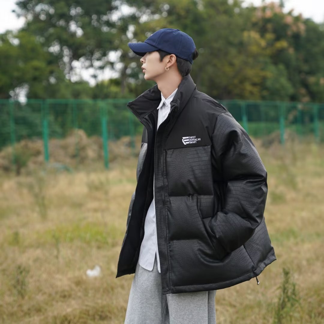 2022 빵 의류 느슨한 악어 가죽 코튼 패딩 재킷 하라주쿠 바람 느슨한 대비 컬러 코트 재킷 조수 머리카락의 세대