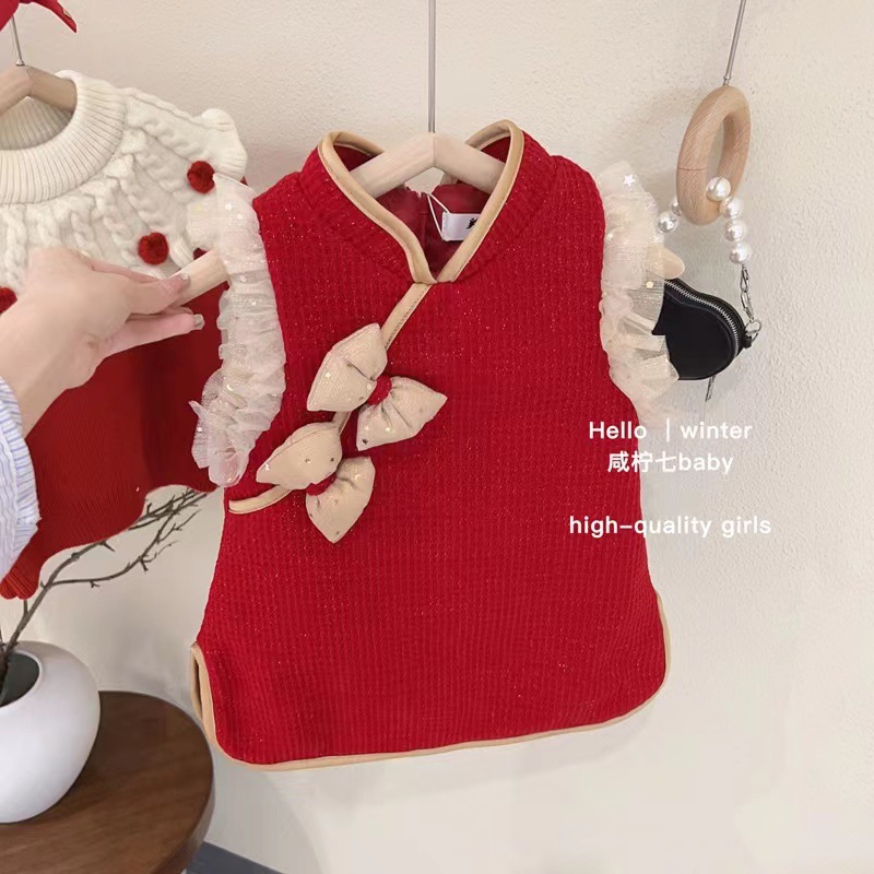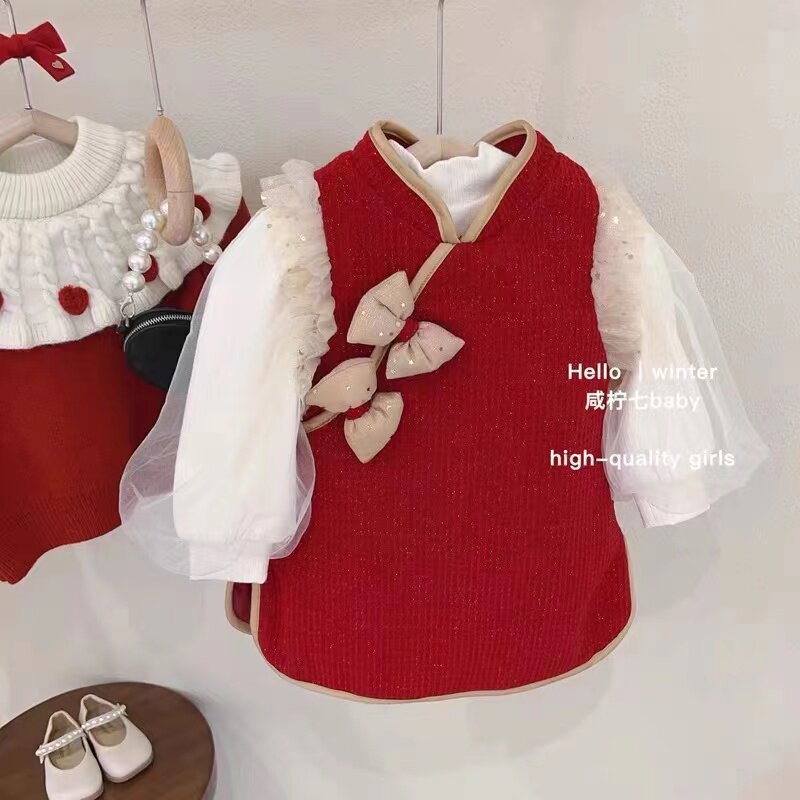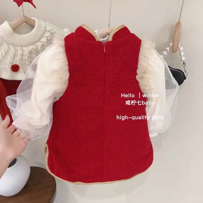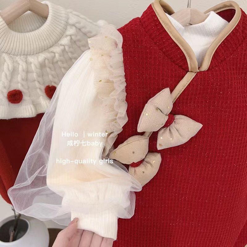 아동복 겨울 세트 새로운 2022 가을과 겨울 새로운 여아 단색 기모 Guofeng 세트 원피스스토어 가기