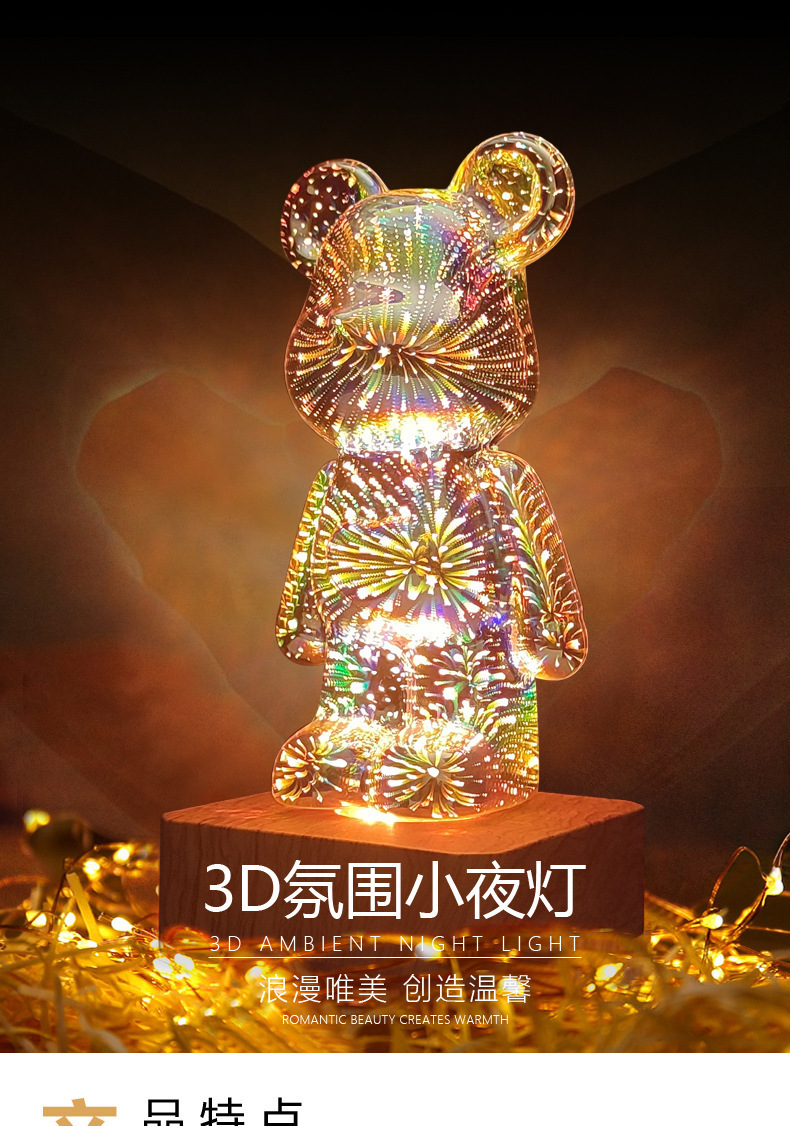 새로운 폭력 곰 3D 유리 램프 머리맡 야간 조명 분위기 조명 가정 좋은 것들 3D 불꽃 놀이 유리 곰스토어 가기
