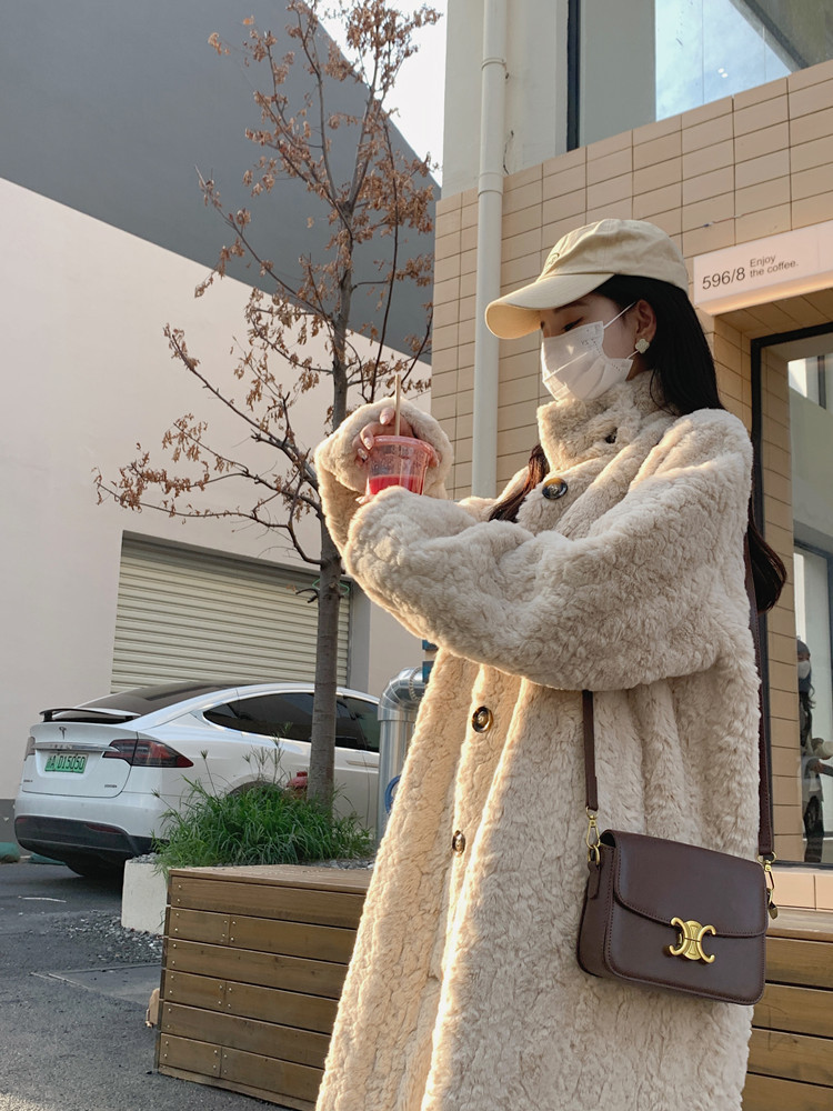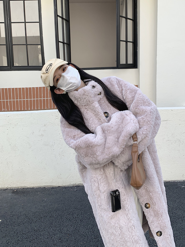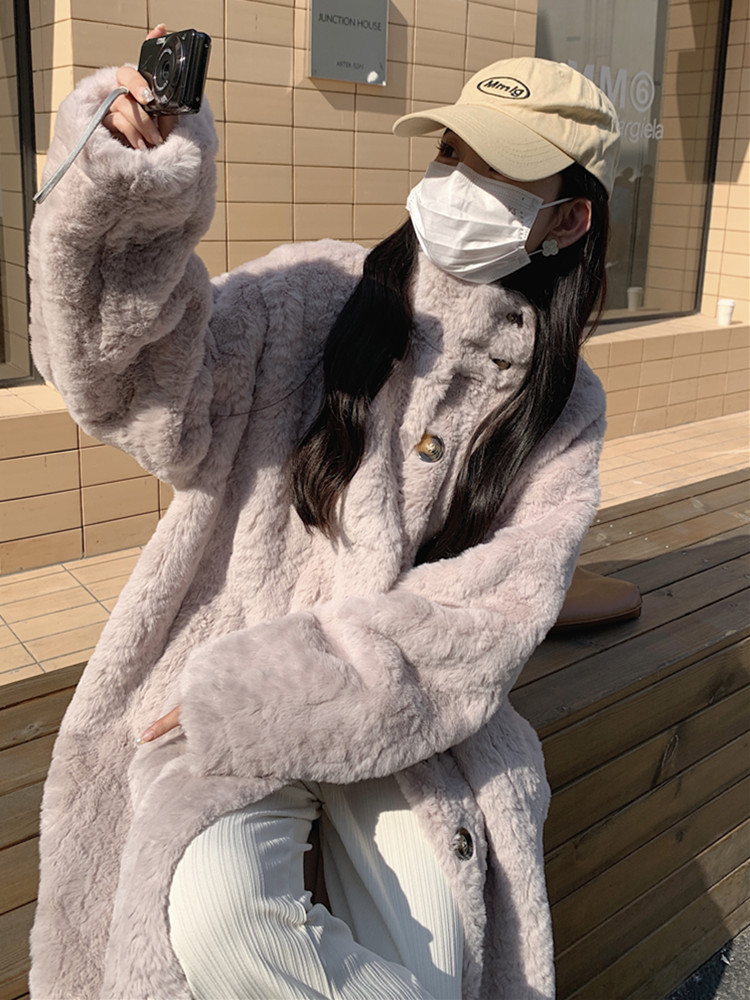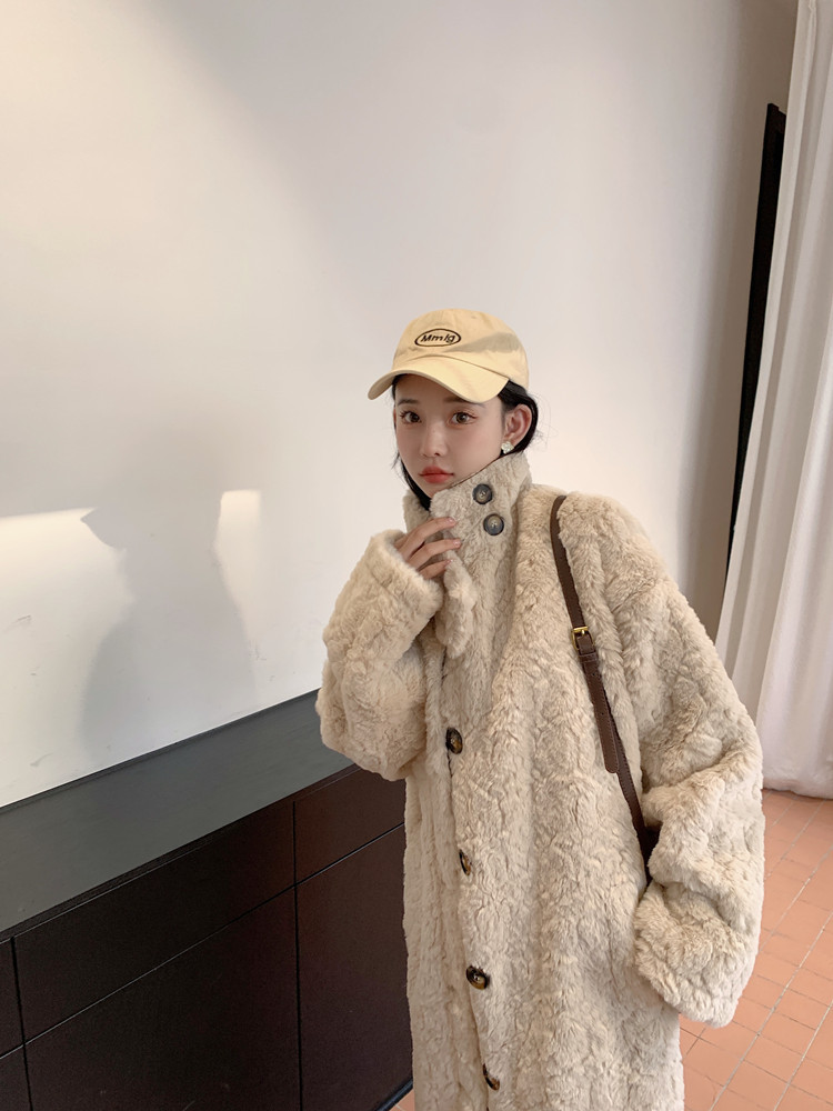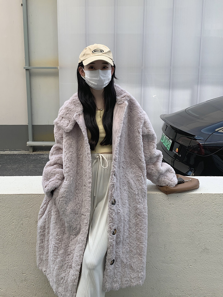램 울 코트 여성 가을과 겨울 2022 새로운 느슨한 세트 칼라 중간 길이 모피 한국 스타일 게으른 토끼 울 코트스토어 가기