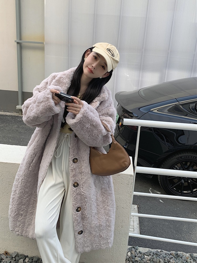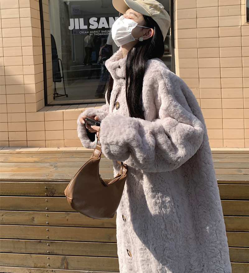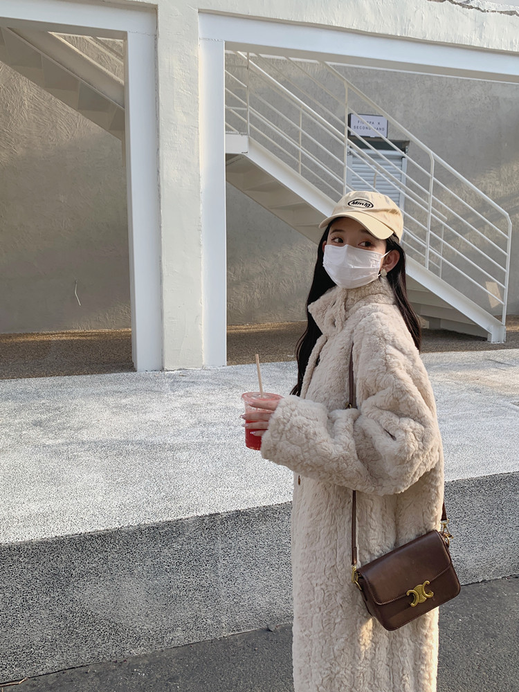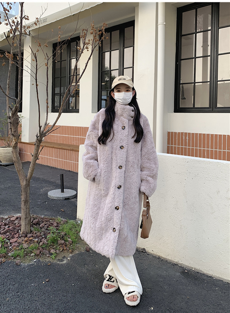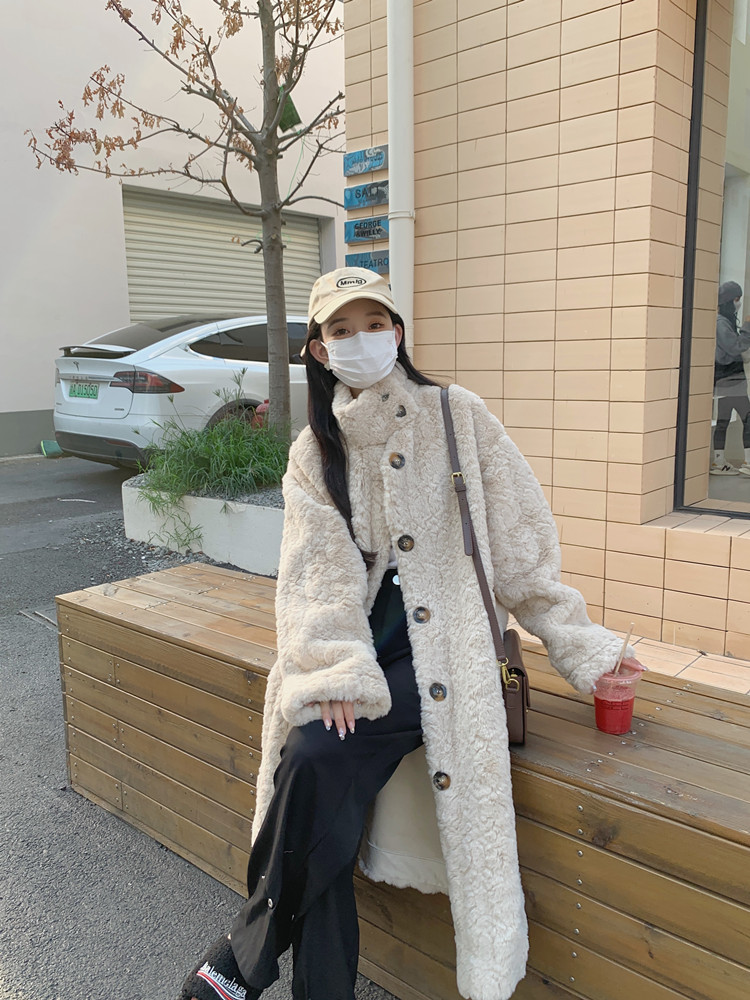 램 울 코트 여성 가을과 겨울 2022 새로운 느슨한 세트 칼라 중간 길이 모피 한국 스타일 게으른 토끼 울 코트스토어 가기