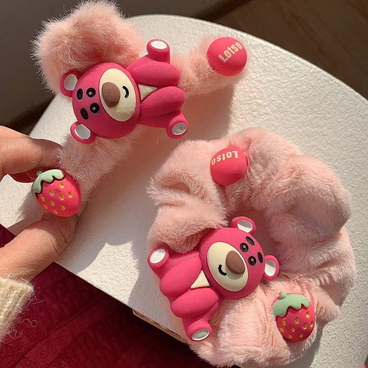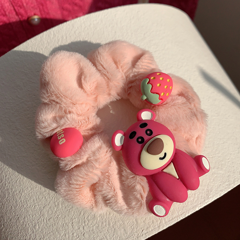 • 1189D 단면 딸기 곰 봉제 헤어 링