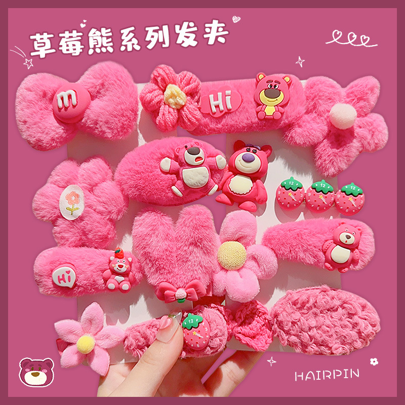 큰 딸기 곰 잡아 클립 귀여운 봉제 만화 헤어핀 소녀 달콤한 상어 클립 2024 새로운 머리 액세서리 헤어핀스토어 가기