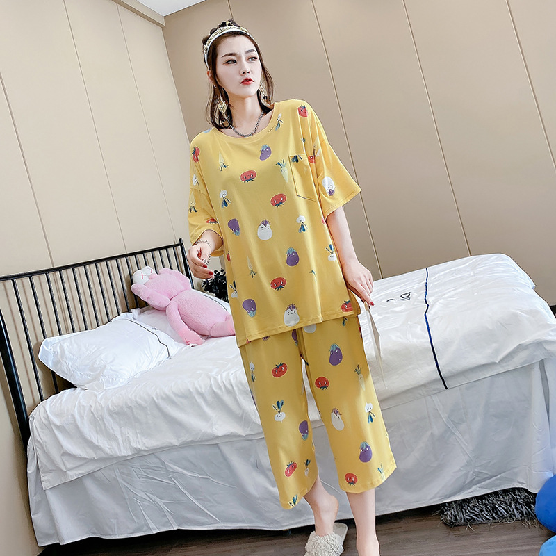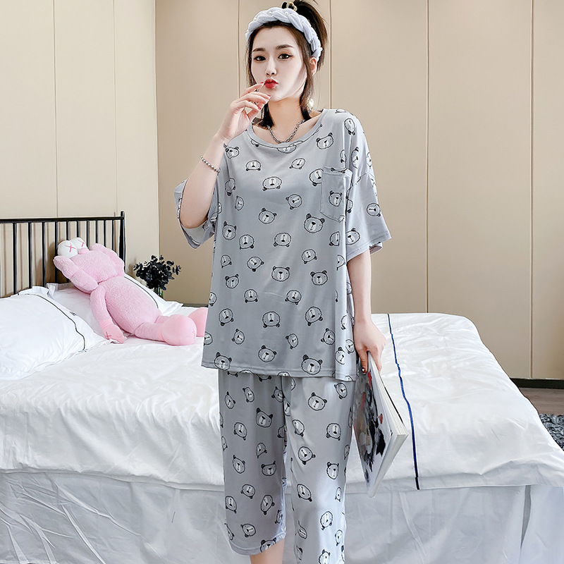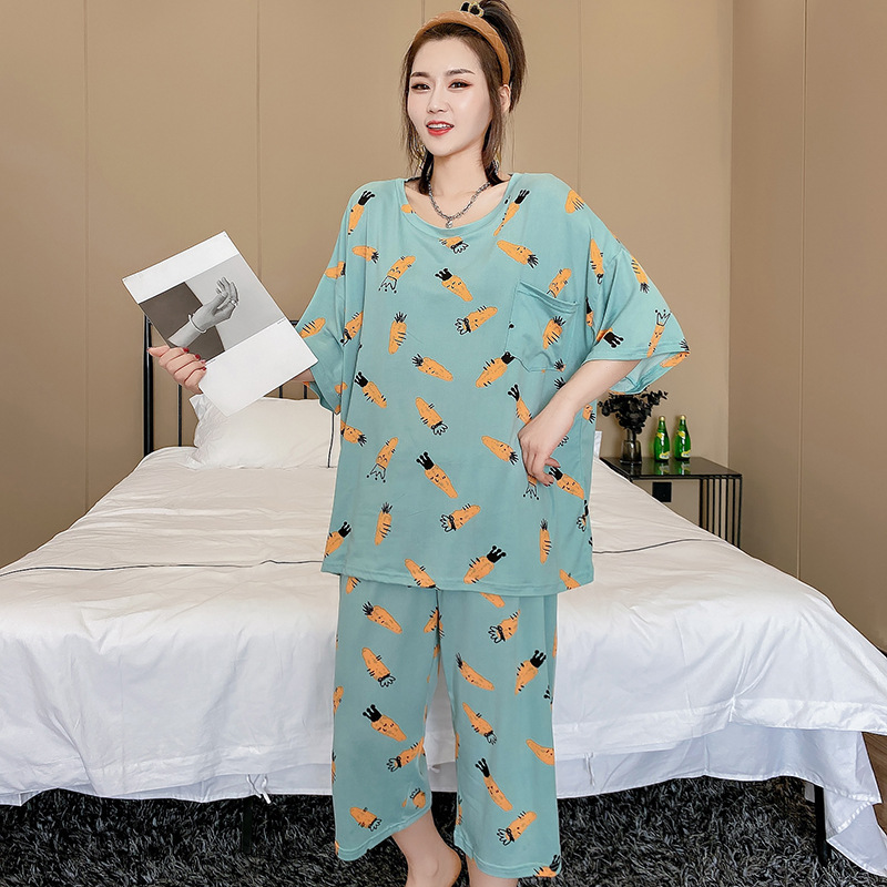 2023 여름 얇은 우유 실크 반팔 자른 바지 플러스 사이즈 지방 mm200 kg 느슨한 여성 잠옷 300 가정 옷스토어 가기