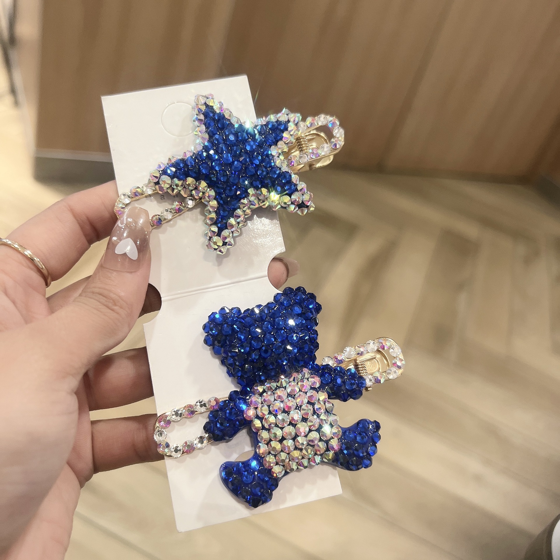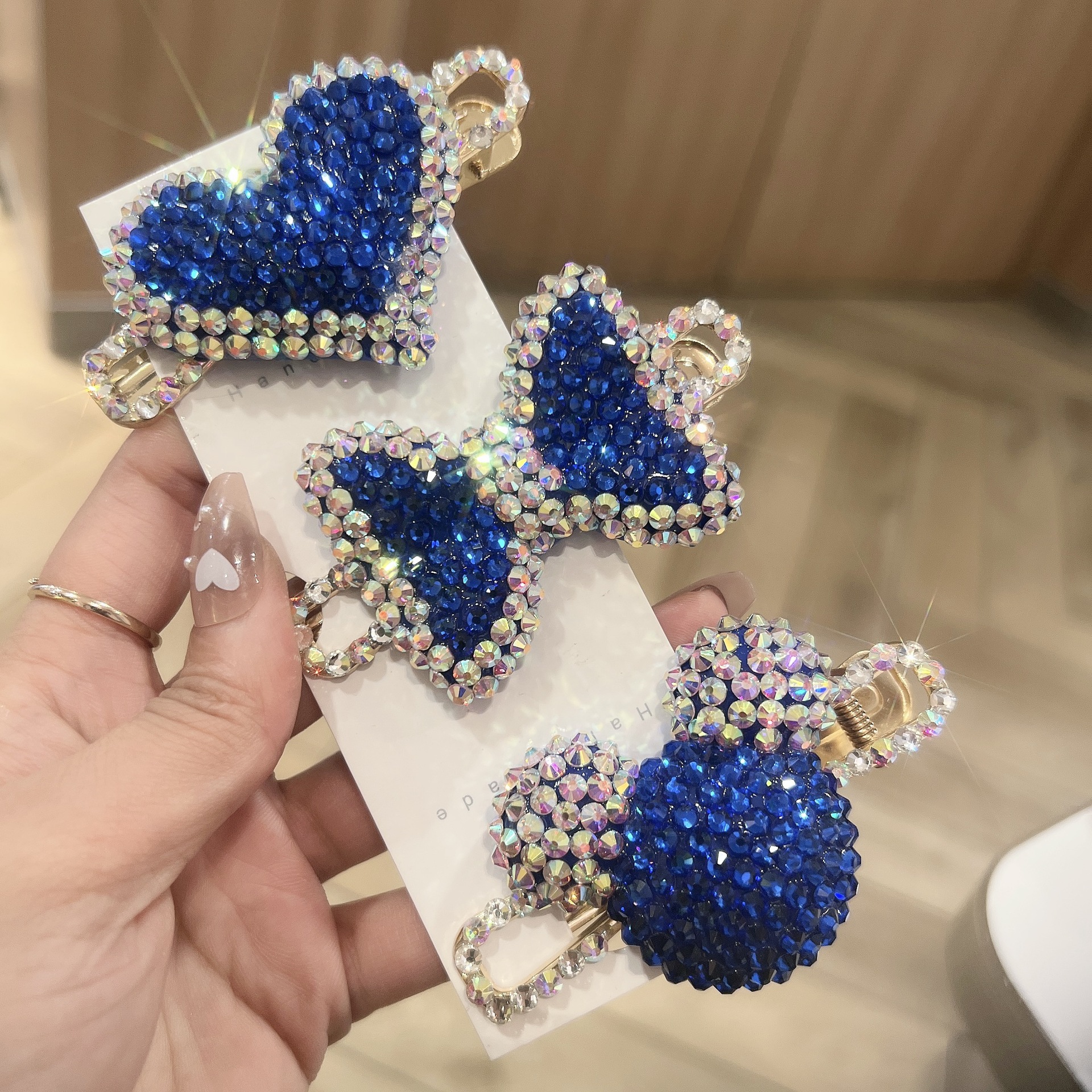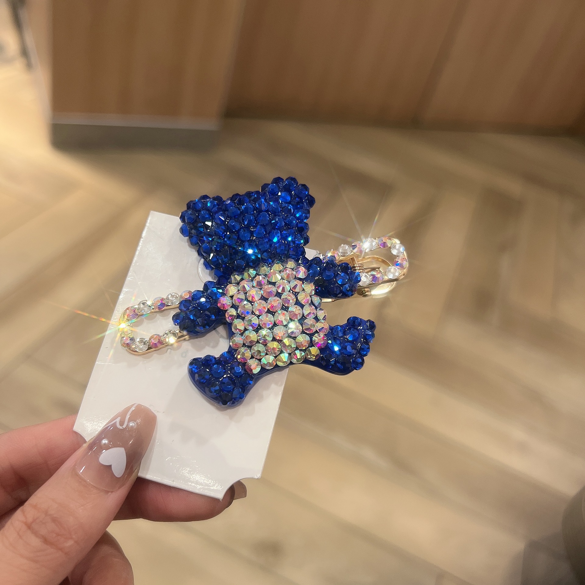 한국 스타일 슈퍼 플래시 라이트 럭셔리 중공업 라인 석 우아한 오리 부리 클립 귀여운 사이드 클립 곰 활 클립 헤어 액세서리 머리 장식