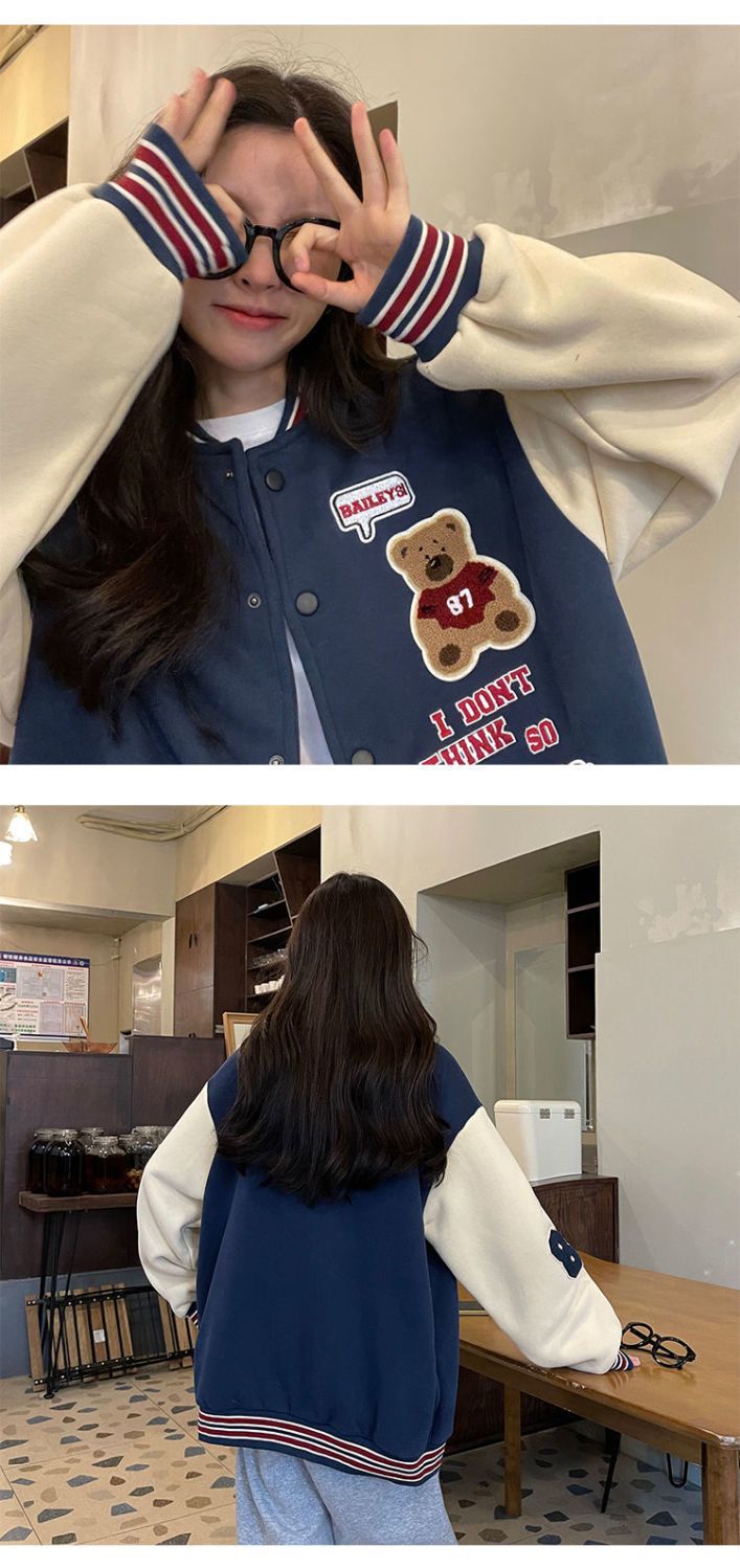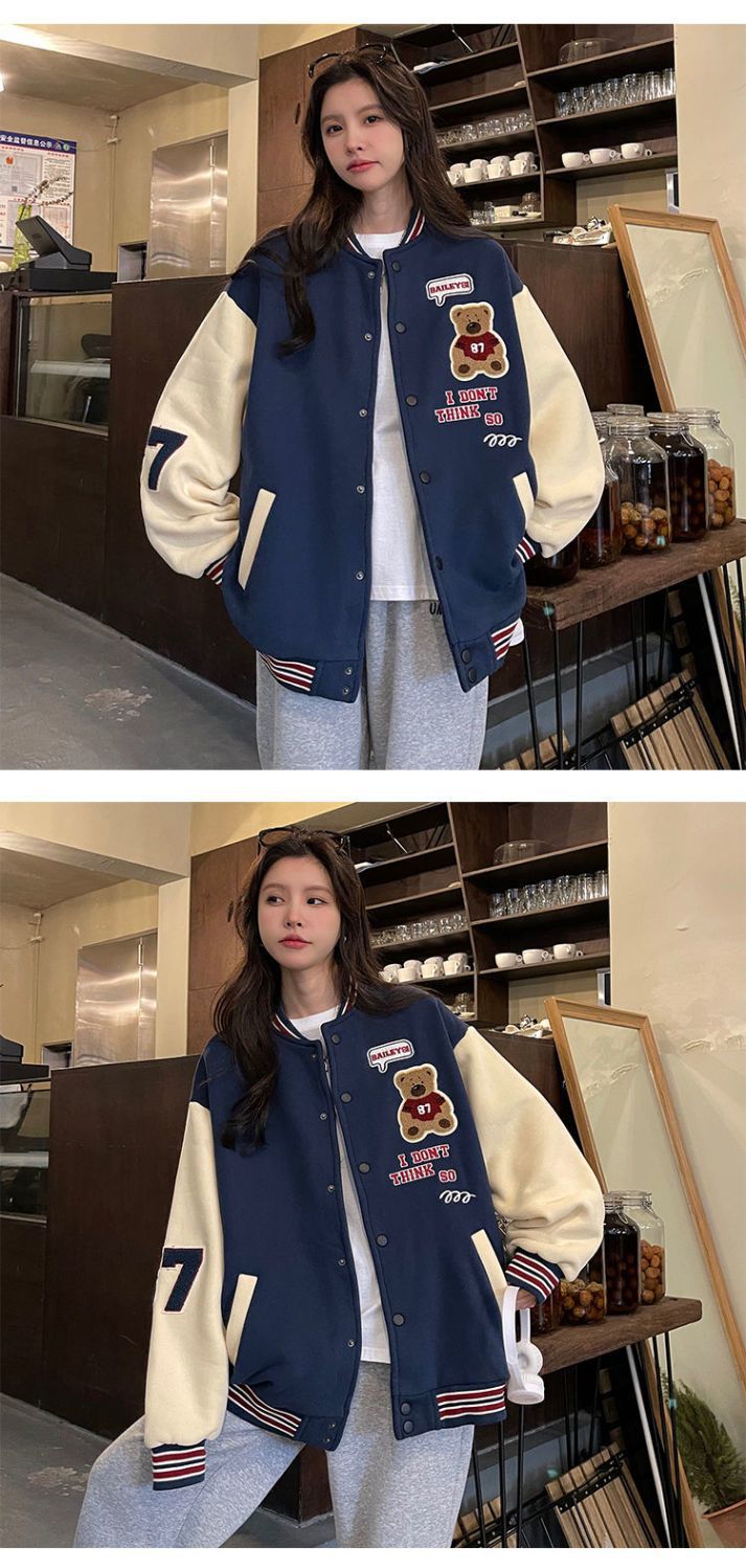 레트로 학생 인터넷 연예인 곰 야구 세트 카디건 여자의 봄과 가을 홍콩 스타일 플러스 사이즈 슬림 룩 모든 매치 재킷 코트 유행스토어 가기
