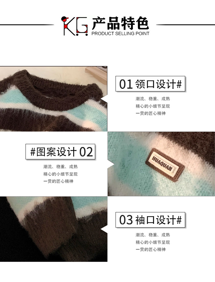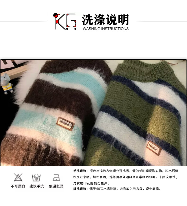 스트라이프 소프트 왁스 스웨터 남성용 겨울 패션 브랜드 인 게으른 스타일 커플 겨울 코트 용 고급 루즈한 니트 스웨터
