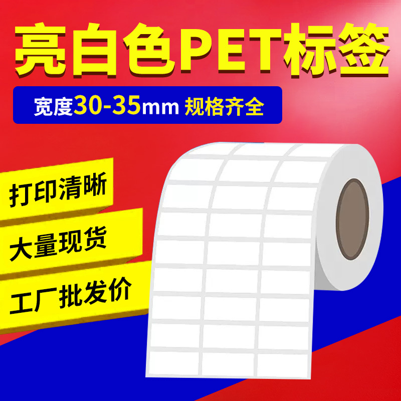 30-35mm 밝은 흰색 PET 라벨 용지 접착 방수 및 오일 방지 30/32/35*10*15*20*25스토어 가기
