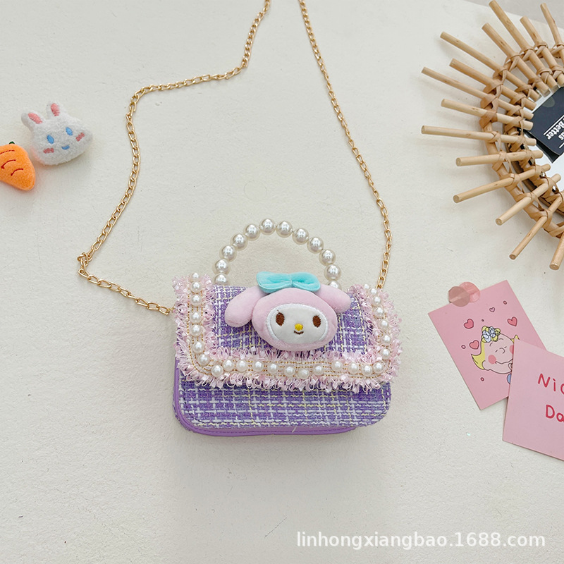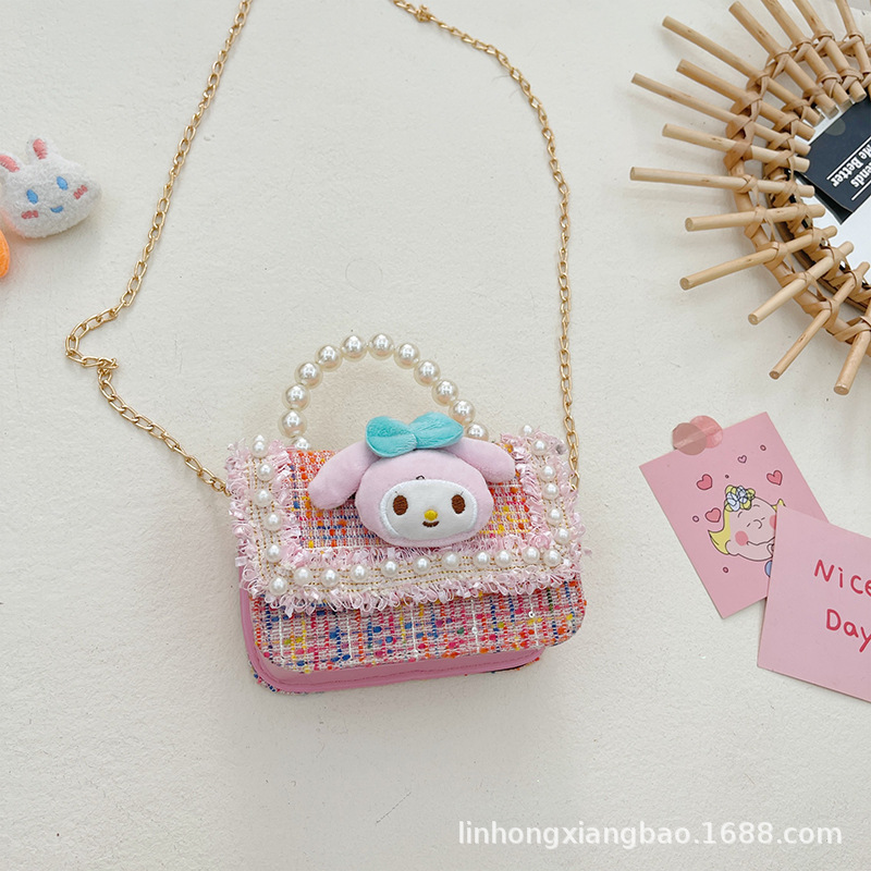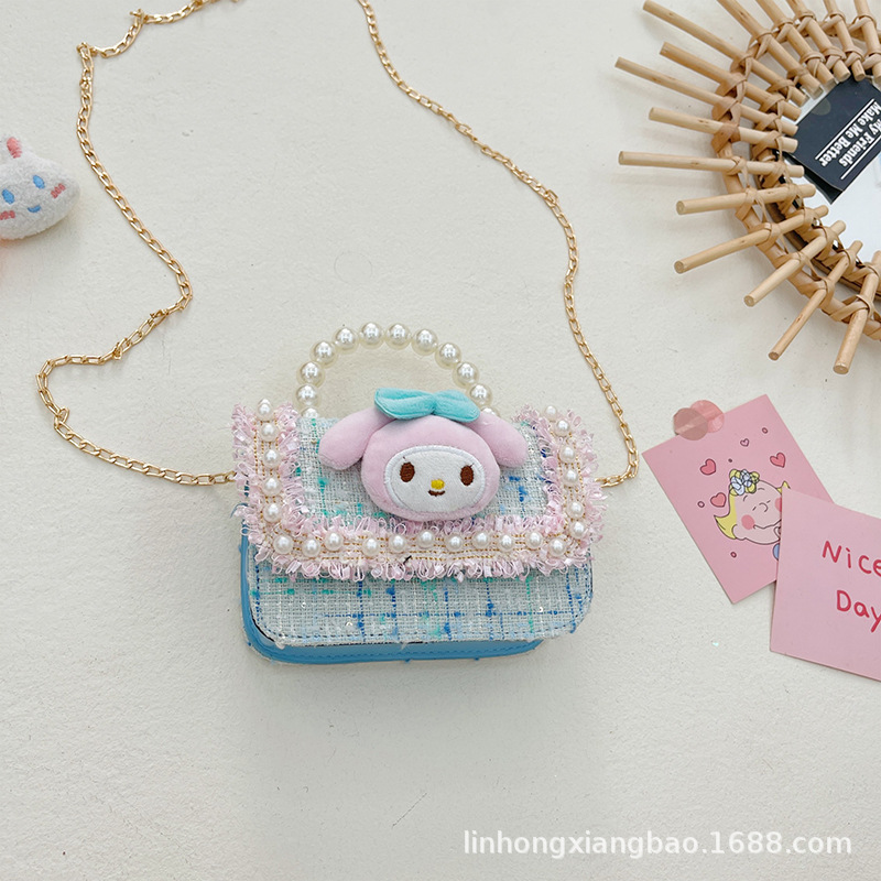 새로운 여자 메신저 백 샤넬 진주 핸드백 체인 작은 사각형 가방 만화 귀여운 어린이 가방스토어 가기