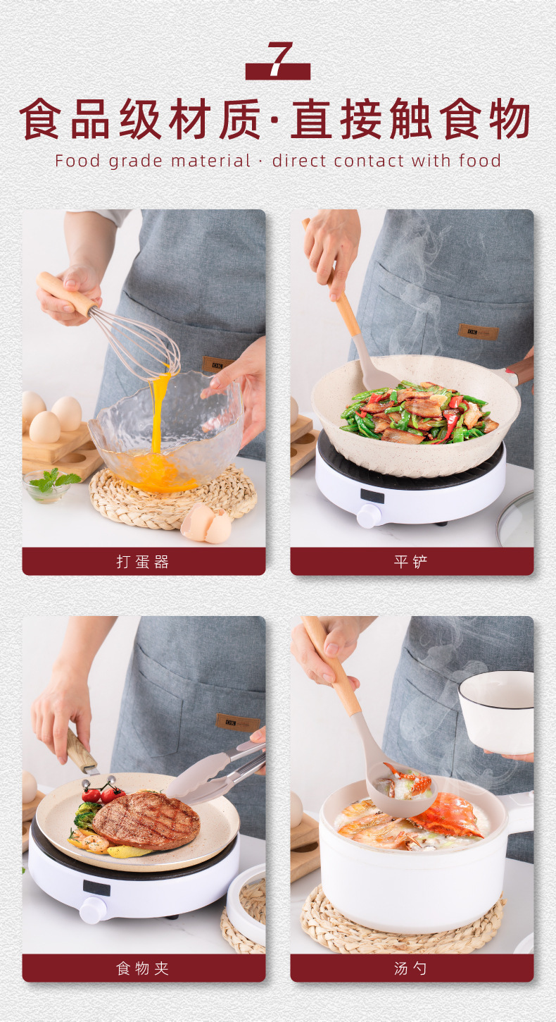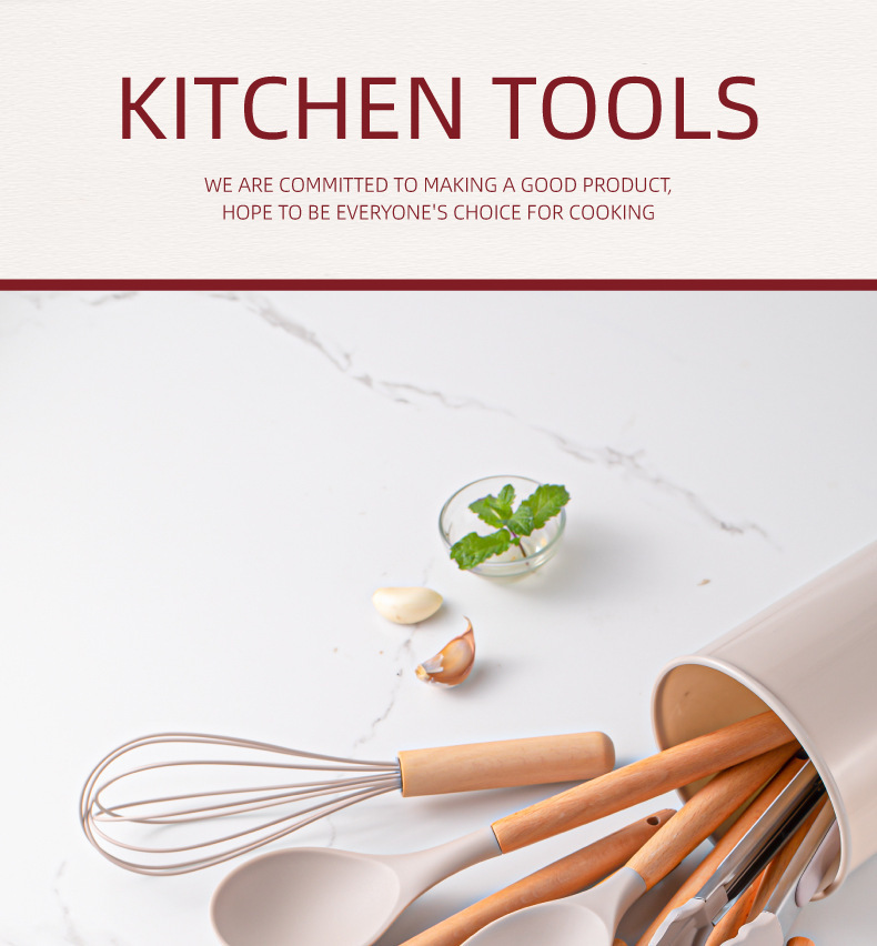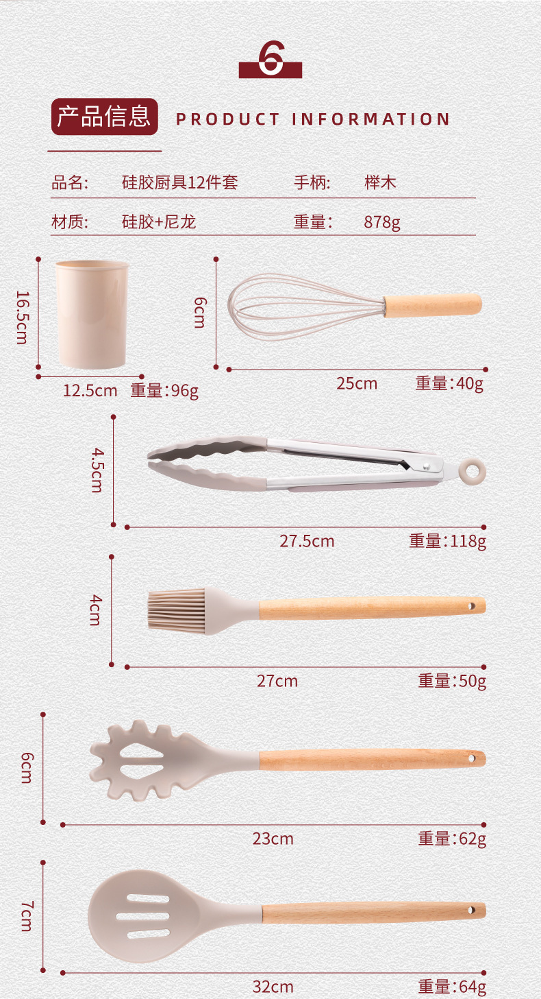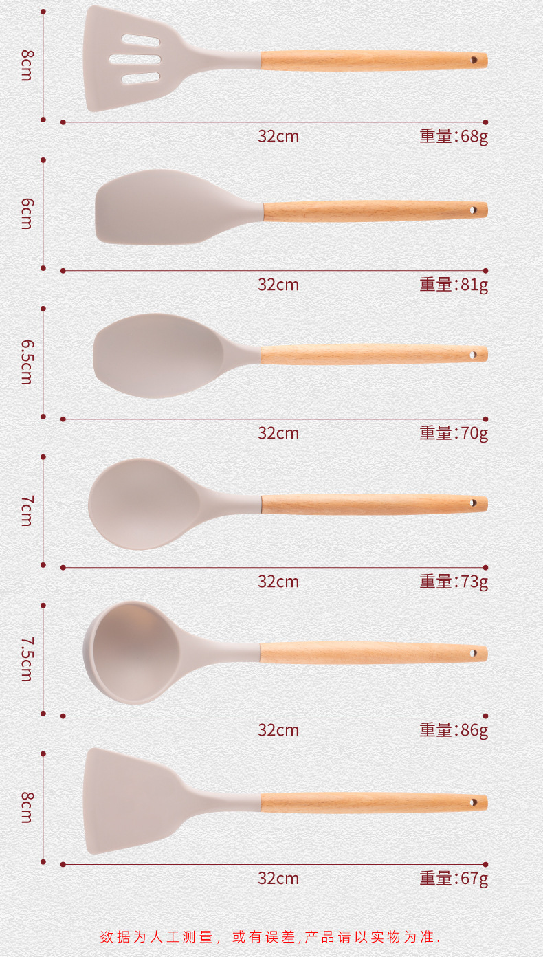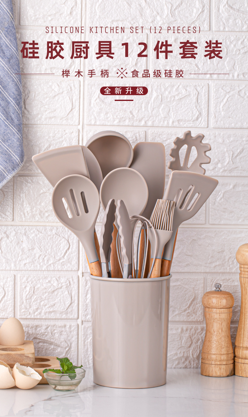 재고 도매 나무 손잡이 실리콘 주방 용품 12 개 세트 저장 배럴 비 스틱 밥솥 주방 도구 요리 삽 숟가락 세트스토어 가기