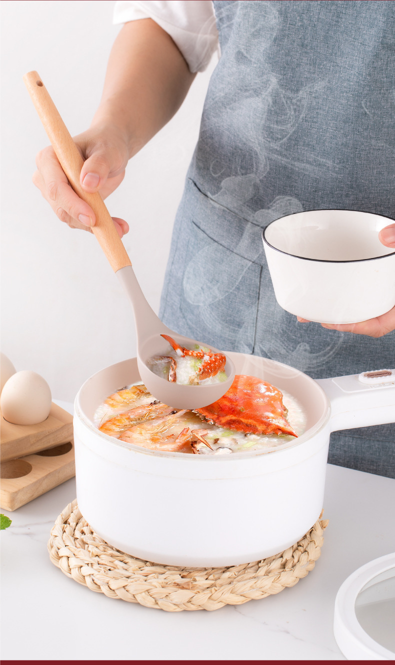 재고 도매 나무 손잡이 실리콘 주방 용품 12 개 세트 저장 배럴 비 스틱 밥솥 주방 도구 요리 삽 숟가락 세트