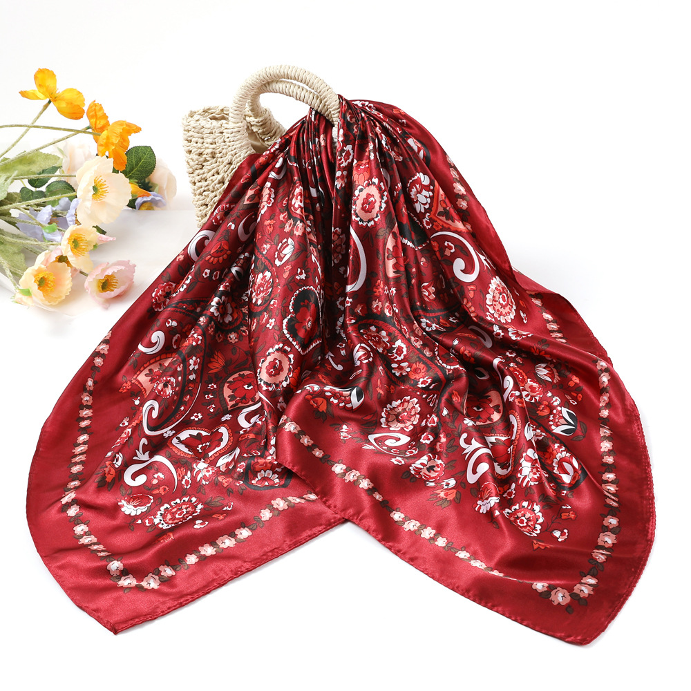 러시아어 대형 스퀘어 스카프 빈티지 캐슈 플라워 프린트 실크 스카프 캐주얼 헤드 스카프 여성용 숄 스카프 대외 무역 스카프스토어 가기