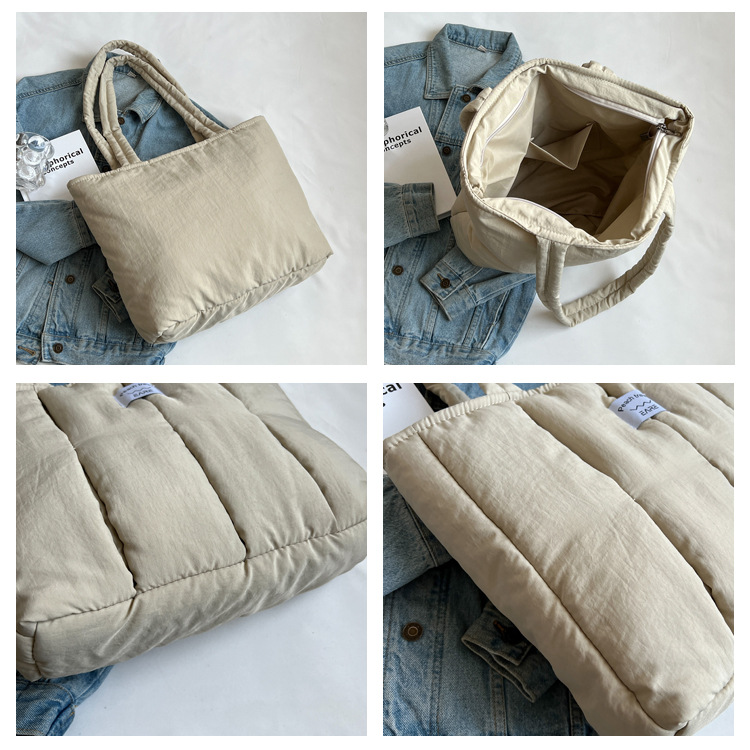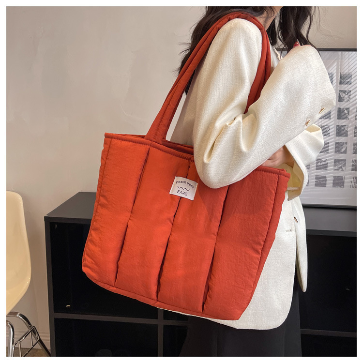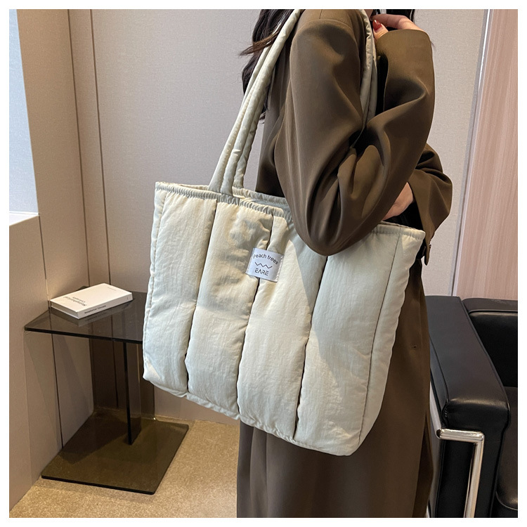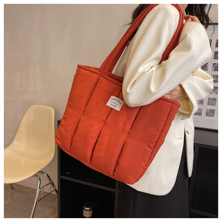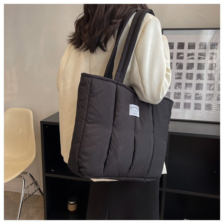 새로운 스타일 면 채워진 부드러운 왁스 토트 백 여대생 수업 숄더백 작업 통근 휴대용 대형 가방 나일론 천 가방
