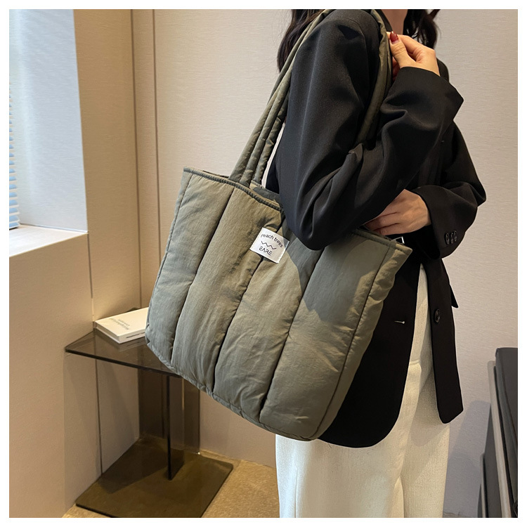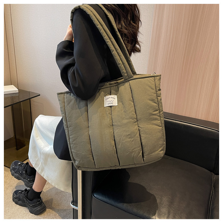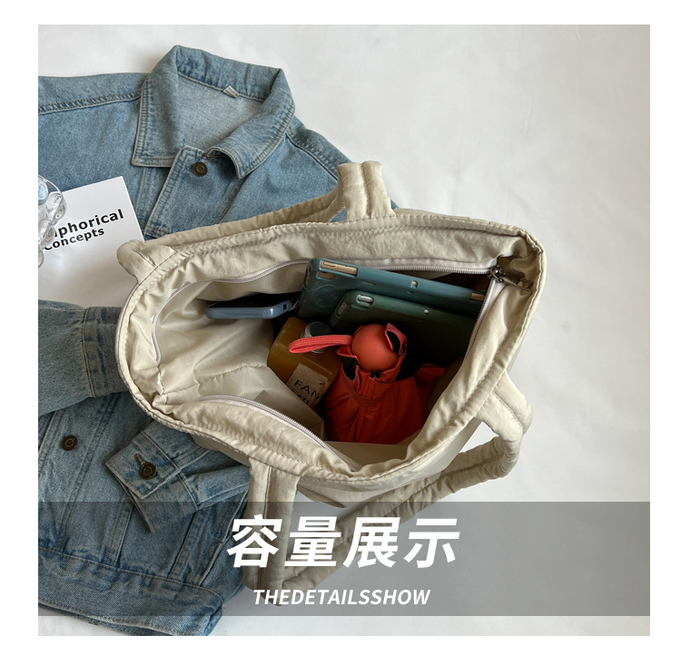 새로운 스타일 면 채워진 부드러운 왁스 토트 백 여대생 수업 숄더백 작업 통근 휴대용 대형 가방 나일론 천 가방스토어 가기
